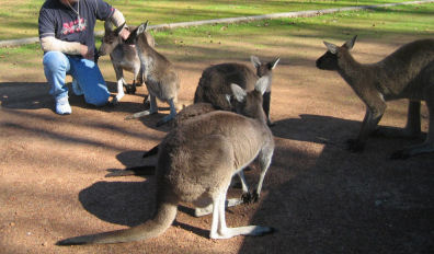 Wednesday was a GORGEOUS autumn day. Sunshine, a few clouds, no rain, no wind. By late morning we were off to the Donnelly River Holiday Village so Dave could experience the kangaroos and emus ‘up close and personal’. They didn’t disappoint. Because there was almost no-one there, the kangaroos decided we might just have some food for them (we didn’t), so they hopped on over and got very friendly with us. It was mostly the females and the young ones, then the male ambled over to keep an eye on his ladies. While all this was going on, a couple of emus were checking us out too, but they aren’t quite so cuddly or friendly! More photos… (BTW, the entire village is up for sale—36 cottages, store etc. all for $2.9m!)