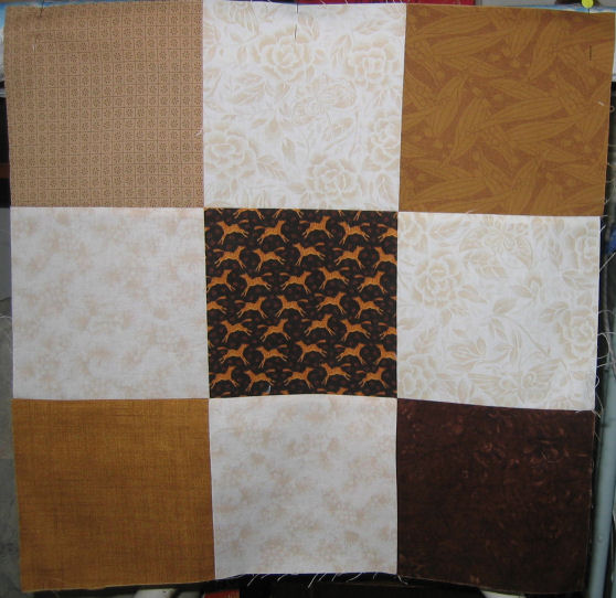 As promised, here are some photos of the Disappearing Nine Patch I’m doing for the back of the log cabin quilt. Basic instructions are in the photo captions.