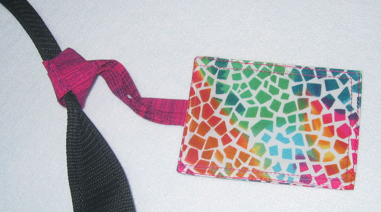 I’ve just added a quilted laptop sleeve/tote/bag and matching luggage tags to my Etsy store. They’re bright! 😉