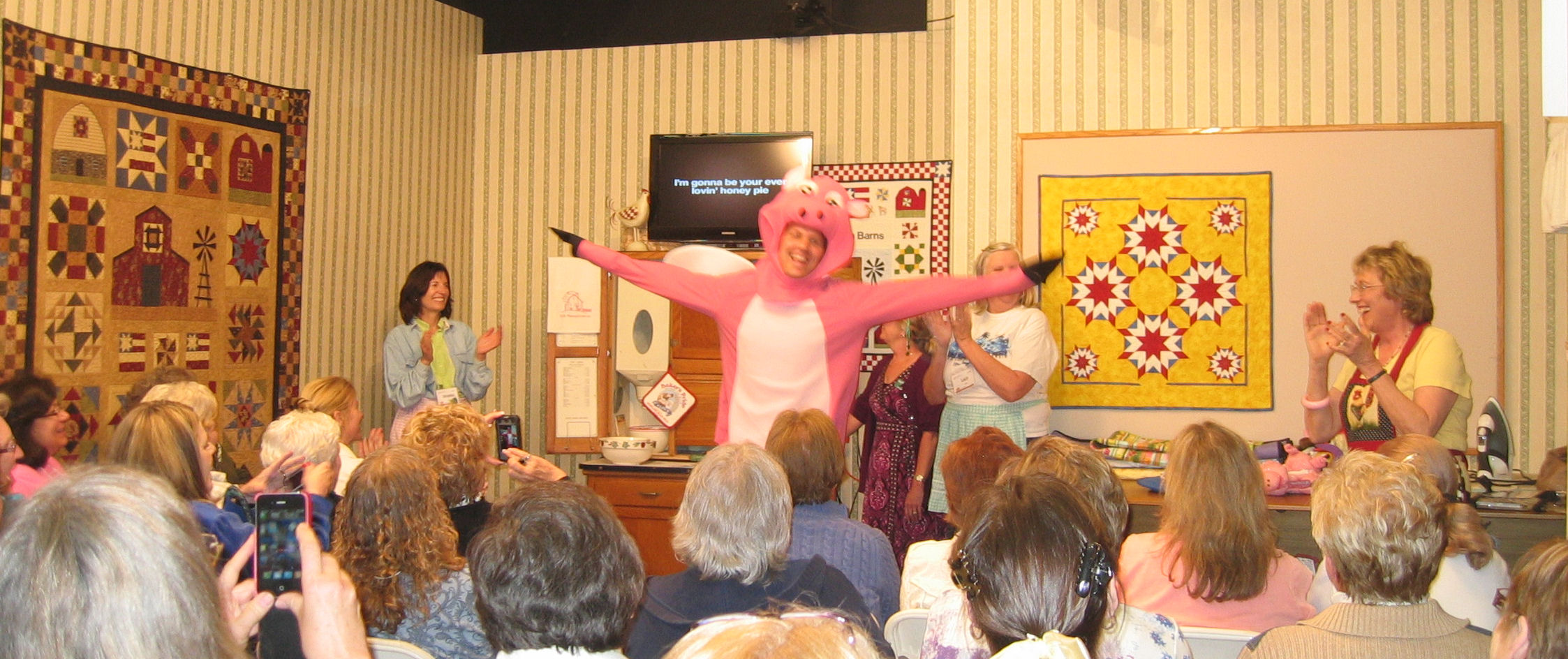 She was just like she appears on TV, except even more personable. The American Barns Trunk Show was full of information and techniques and some history of the barns , the quilt blocks, and the project to get quilt blocks painted onto barns (some 3000 barns now have them). The evening was full of fun, laughter, song and dance (yes, really!). Her whole family is involved, with her son, brand new daughter-in-law and granddaughter all performing or being featured in some way.