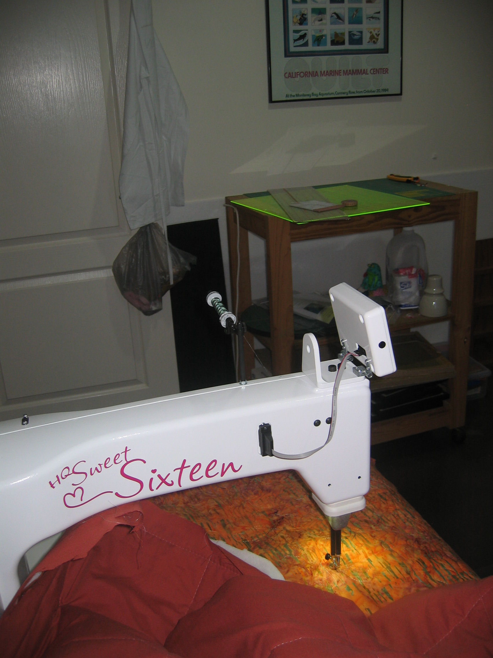 After playing with the HandiQuilter (HQ) Sweet Sixteen quilting machine at the Eleanor Burns Quilting Academy in March, and after really putting it through its paces when a friend lent me hers, I’ve now purchased my own machine!