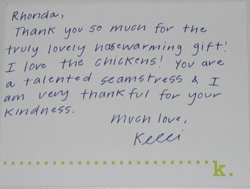 Update: Kelli must be one of the few people left in the world to handwrite thank you cards: