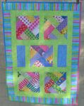 I’ve finally made the last two quilts from the one jelly roll of fabric I got at the Eleanor Burns Quilting Academy (here’s the first and largest quilt I made: https://sandgroper14.wordpress.com/2011/04/25/bright-jelly-roll-lap-quilt-finished/).