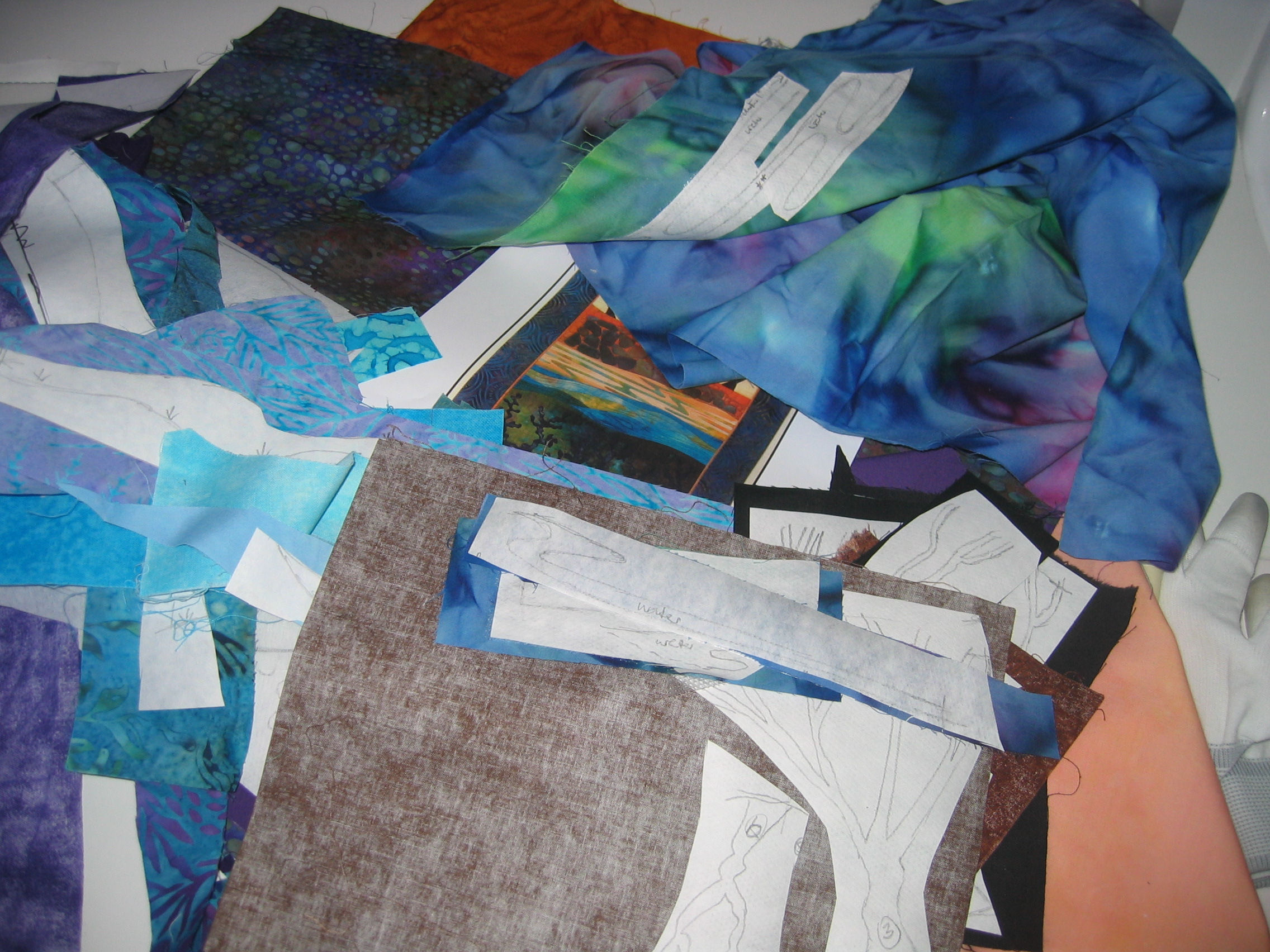 - one or more pieces of fusible web, marked with the trees, rocks, water reflection pieces, and seaweed. These are your applique pieces.
