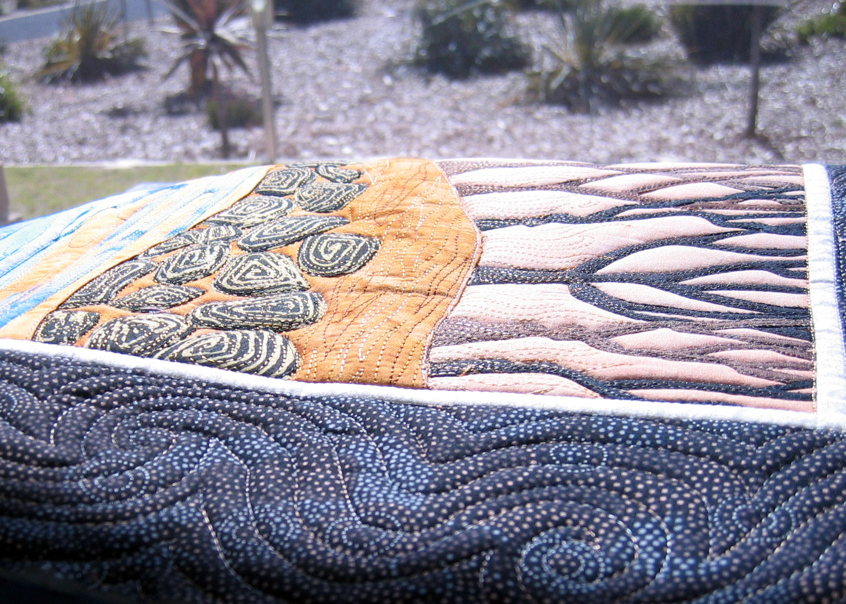 The finished art quilt: https://sandgroper14.wordpress.com/2011/08/14/the-elements-art-quilt/