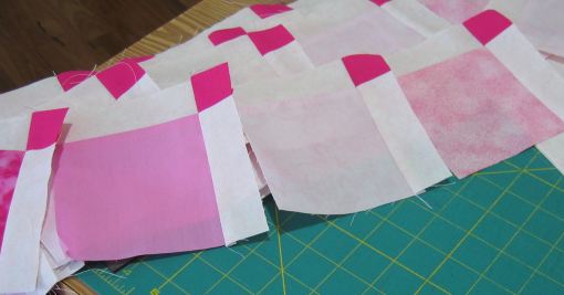 After deciding on the design, the colour, and the fabrics, then doing all the cutting, it was time to start putting the main part of the quilt top together.