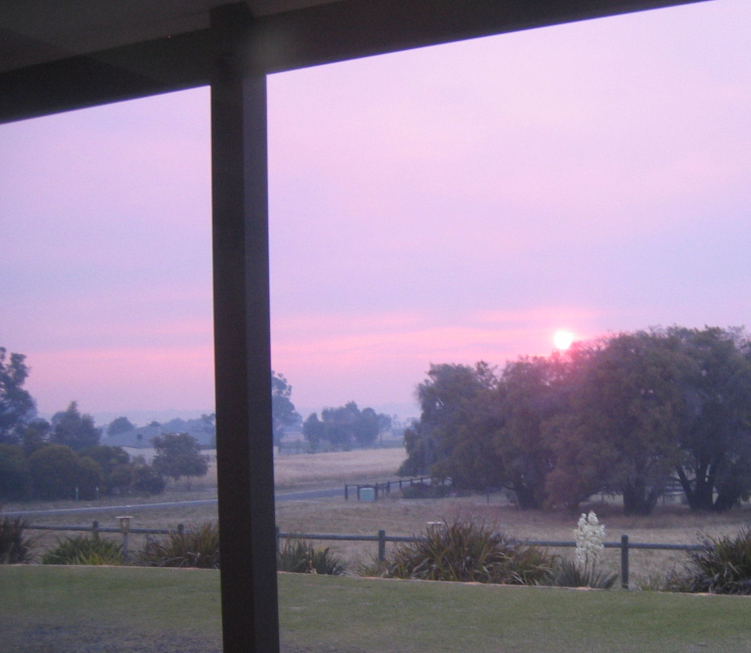 Here’s the sunset from my home office window on one of the very smoky days. You can *just* make out the ridge of sand dunes in the far distance — they are normally in clear view — and you can’t see the estuary at all.