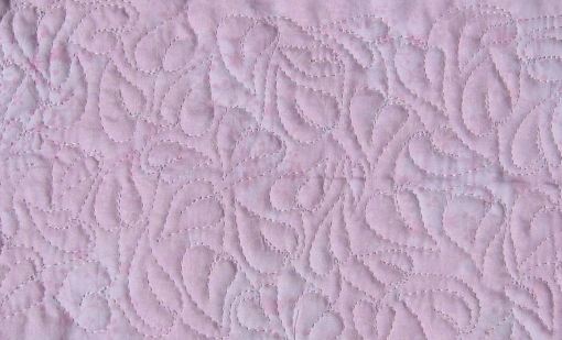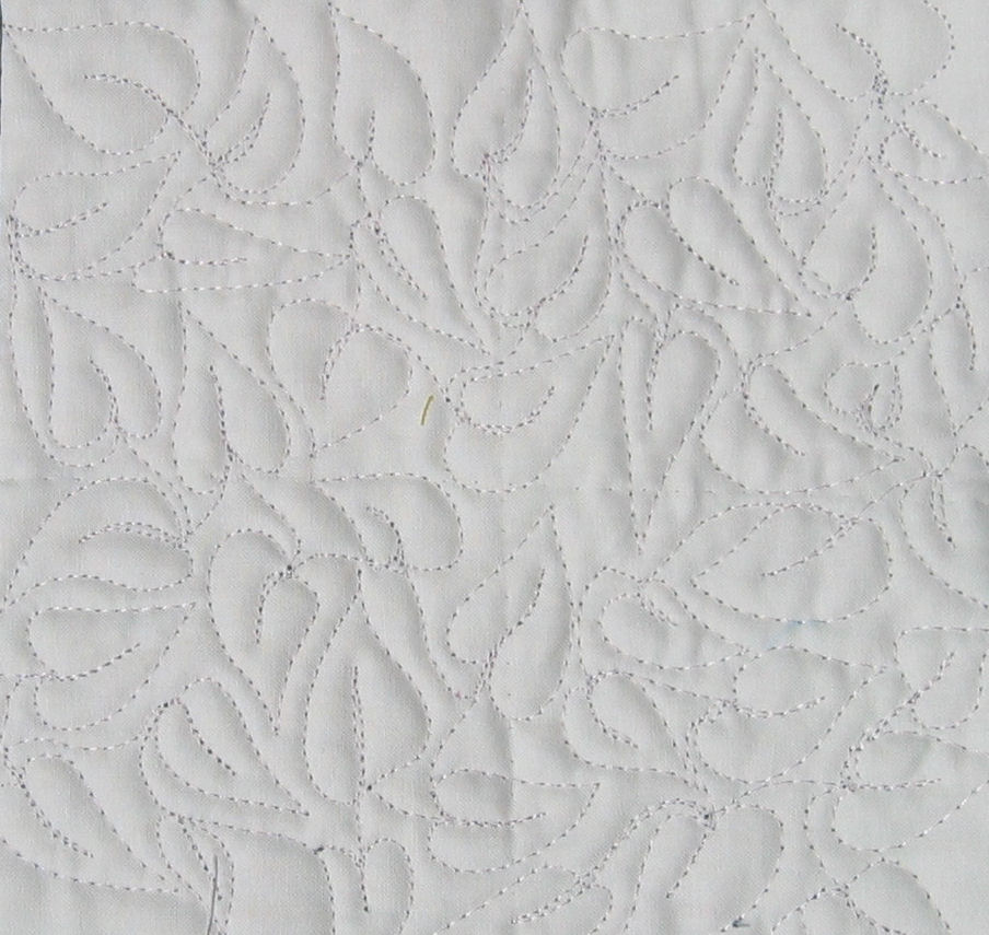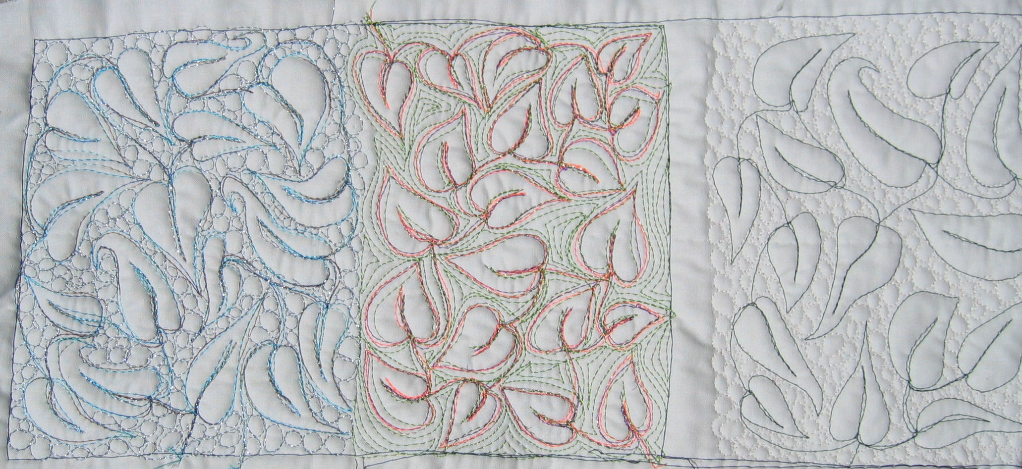 I used my Handi Quilter Sweet Sixteen to do the quilting, and except for the final practice piece, all practice sandwiches were done on off-white sheeting, with some offcut cotton or bamboo batting (I can’t remember which as I made these practice sandwiches ages ago!). The bobbin thread in all cases was a soft pink Deco-Bob.