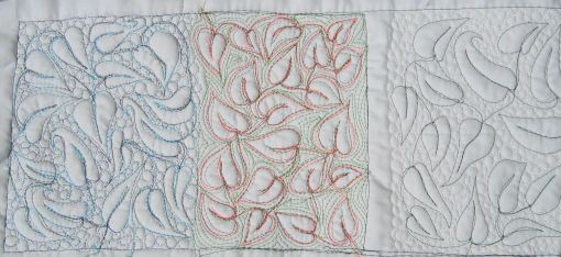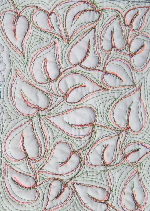 I had fun practising free motion leaves, the first ‘lesson’ in the 2012 FMQ Challenge.