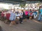 I chose a table in the room where I’ll be spending the rest of the week, and started setting up my gear, including the loan Elna sewing machine (brand new — it will become a demo model for the store once I’ve finished with it). I met a few of the other ladies in my workshop (it looks like there are about 15 of them). Then it was time for drinks, where I met a few more ladies who are in different workshops. GOOD Margaritas, with plenty of tequila! 😉