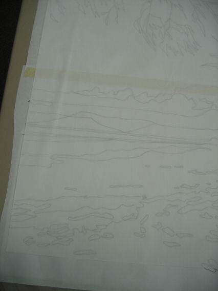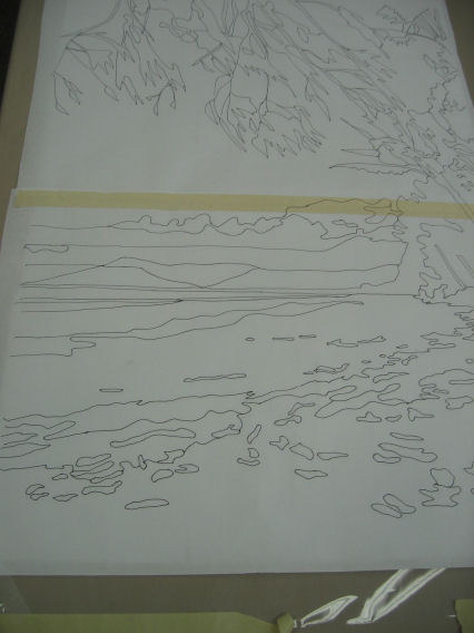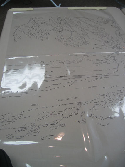 In the afternoon we got started on our pieces. I got my pattern drafted onto plastic, then freezer paper, then on to the muslin base.