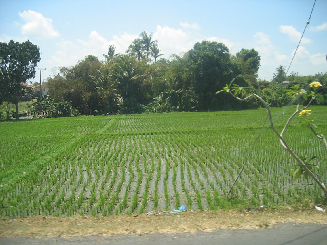 I expected the drive to Ubud to be very rural, but it wasn’t — all the roadside areas were populated except for some very small patches of rice paddies (the rice was ready for harvest or had just been harvested). The closer we got to Ubud, the more stone carving places and art galleries we passed.