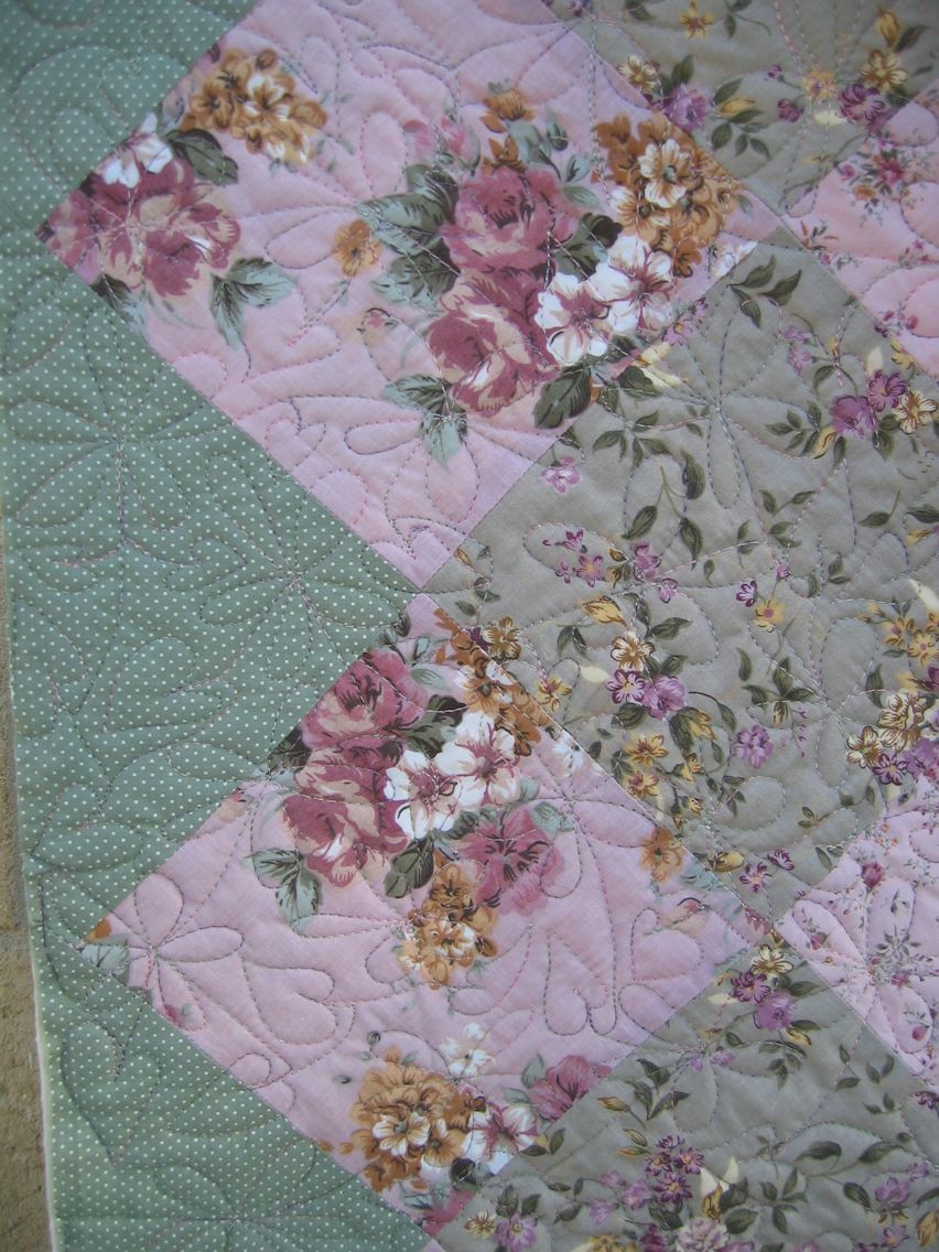 All these bias issues meant that this was not a quilt that was going to lend itself to feature quilting in each square. An all over design was needed! As the fabrics were nearly all small florals I went with a 5-petal flower and small leaf motif.