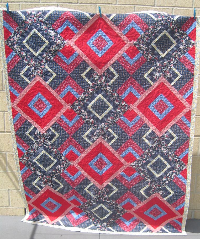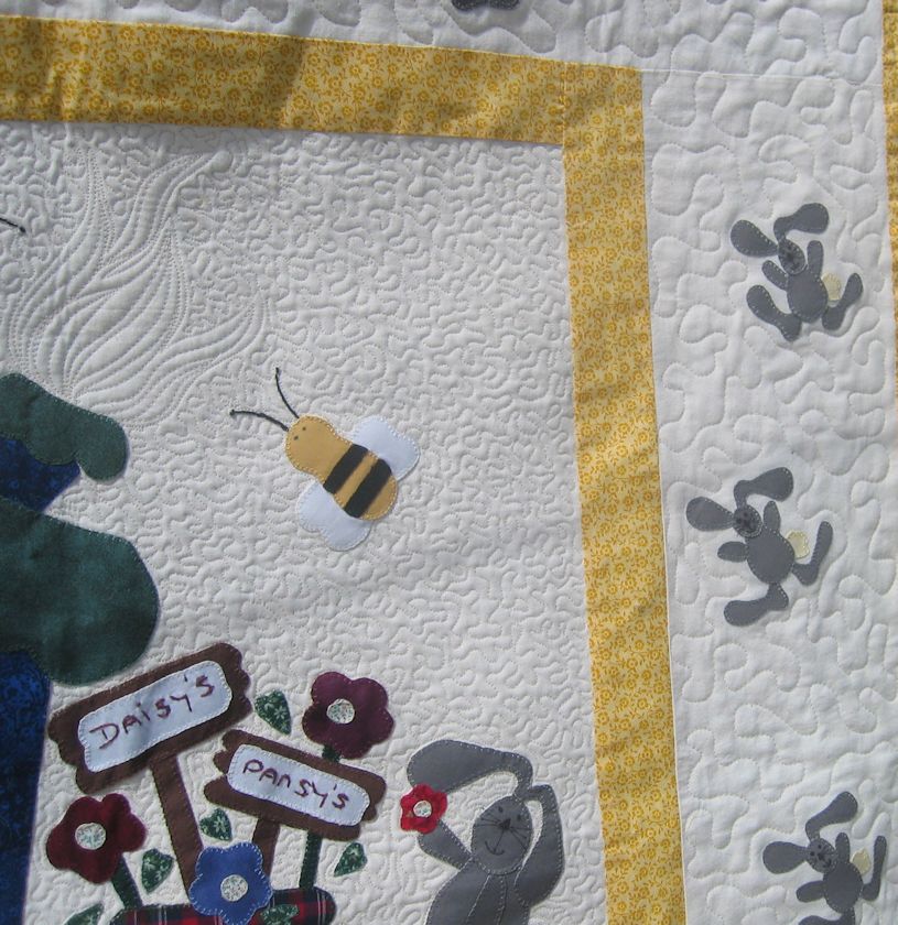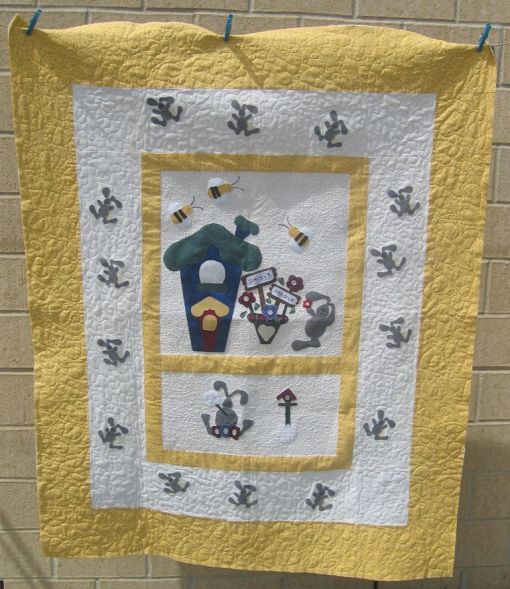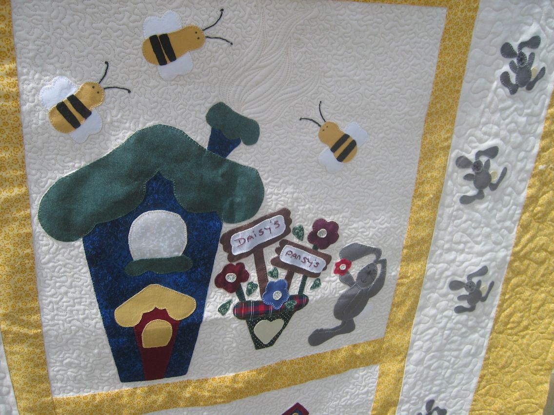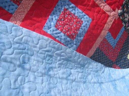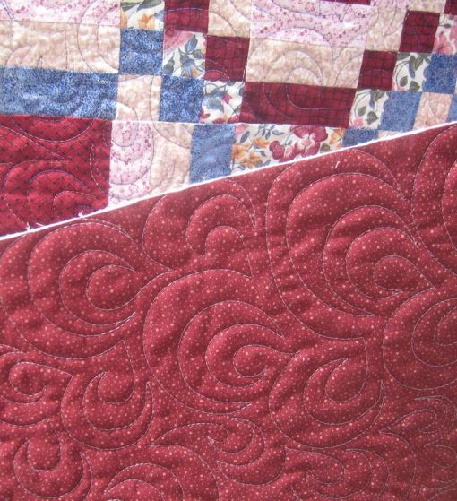For those who don’t know what McTavishing is, it’s the flame-like quilting I did in the applique panels. It’s a technique that was developed/promoted by long-arm quilter, Karen McTavish.
