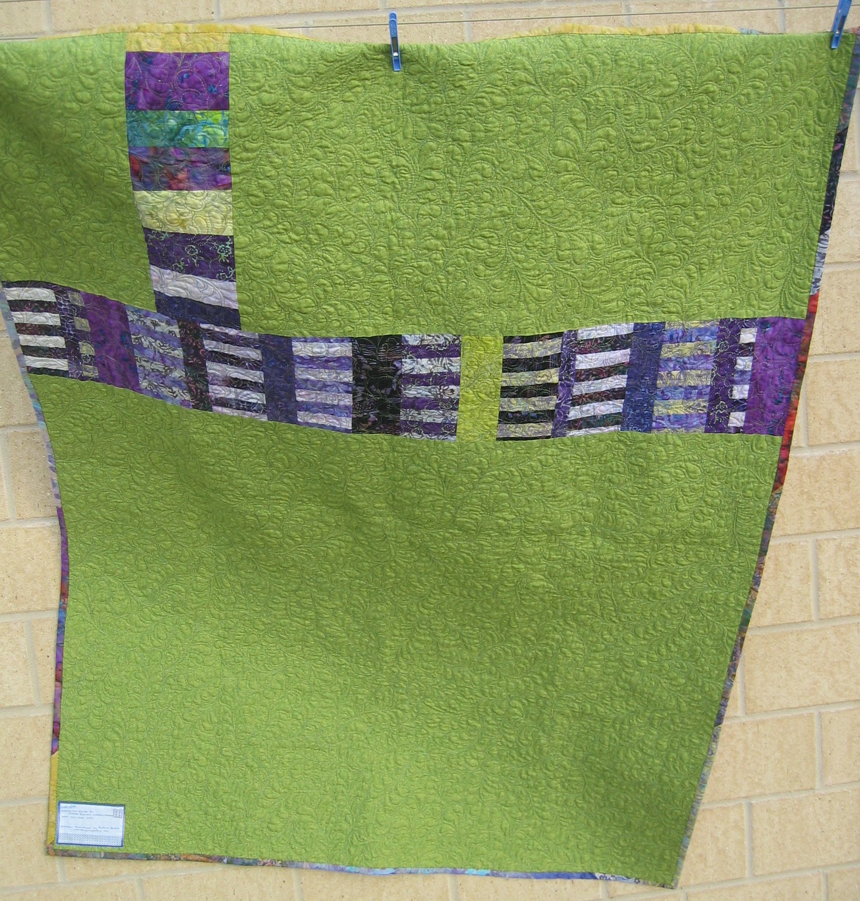 I already had a quilt planned for Dave — it was the art quilt of the beach at Port Douglas that I’d started the week before at the workshop in Texas, which I gave to him when he was in Australia and came and stayed with us last month. And Char had already been the recipient of my first art quilt, my dragonfly quilt. But I could see that Char wanted her own quilt 😉 So I asked her what colours she’d like if I made her a quilt too — she said ‘purple’.