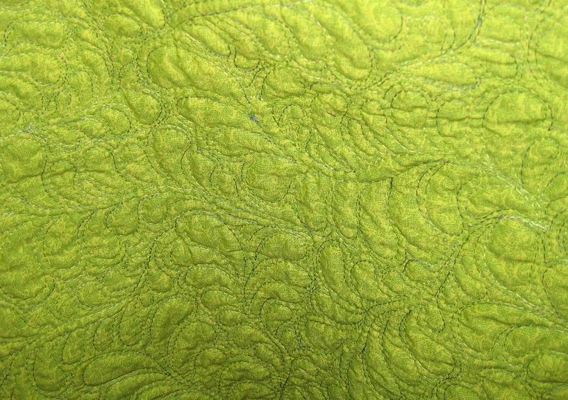 As Char lives near Boston, I used a pure wool batting for warmth. For the quilting, I did an all-over feather pattern using King Tut cottons for the top thread (‘Jewel of the Nile’) and in the bobbin (‘Oasis’).