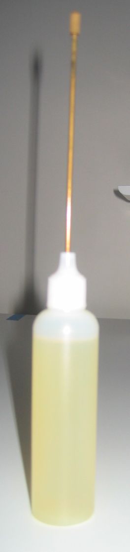 8. Put the cap back on the nozzle and push the extended nozzle back into the oil bottle. (See the update for Feb 2020, below, for alternatives)