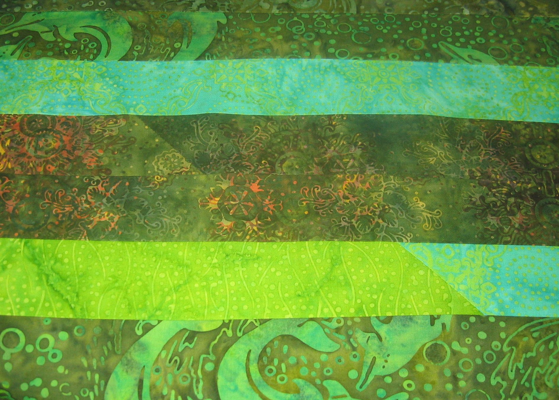 […] had the green jelly roll fabric I’d made up a few weeks ago and that I didn’t particularly like, so I used that as the background, and for the turtles I used one of the metre-long batik lengths […]