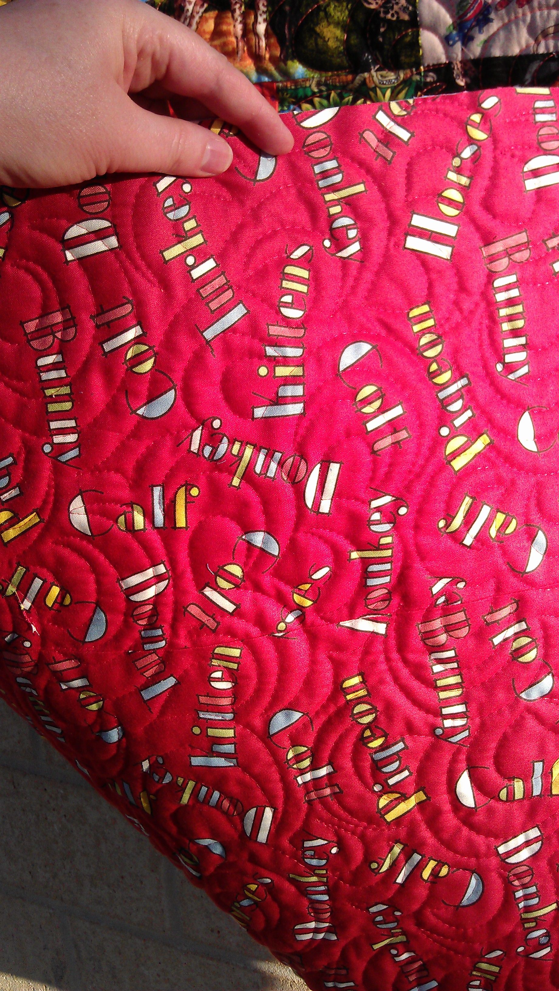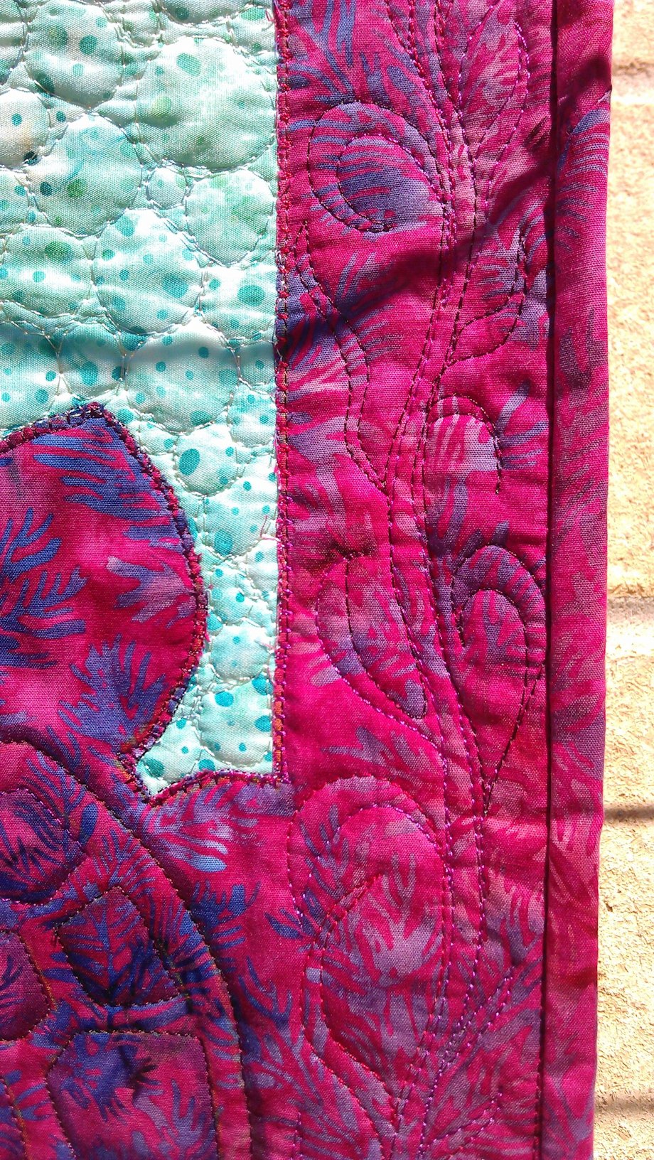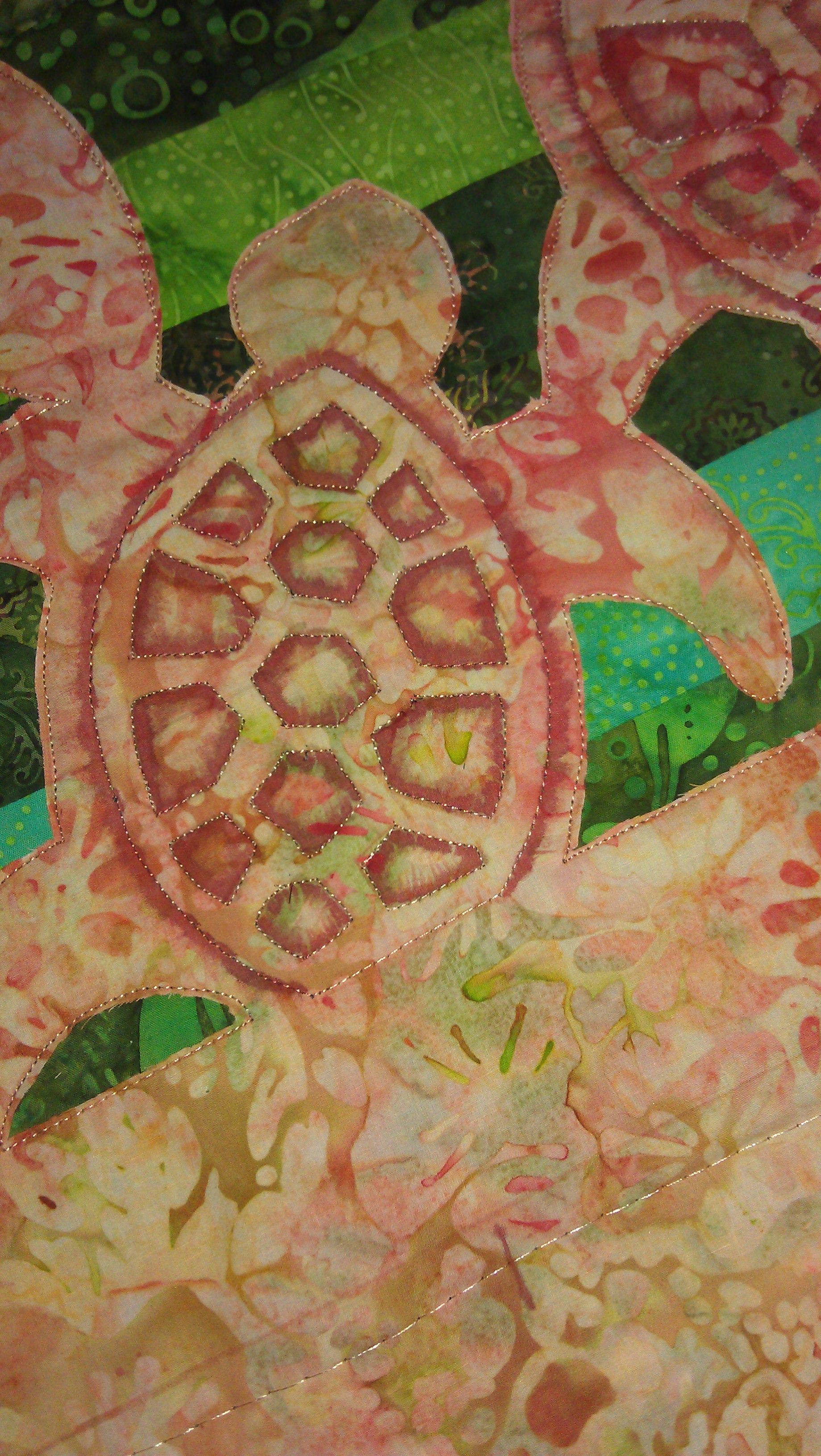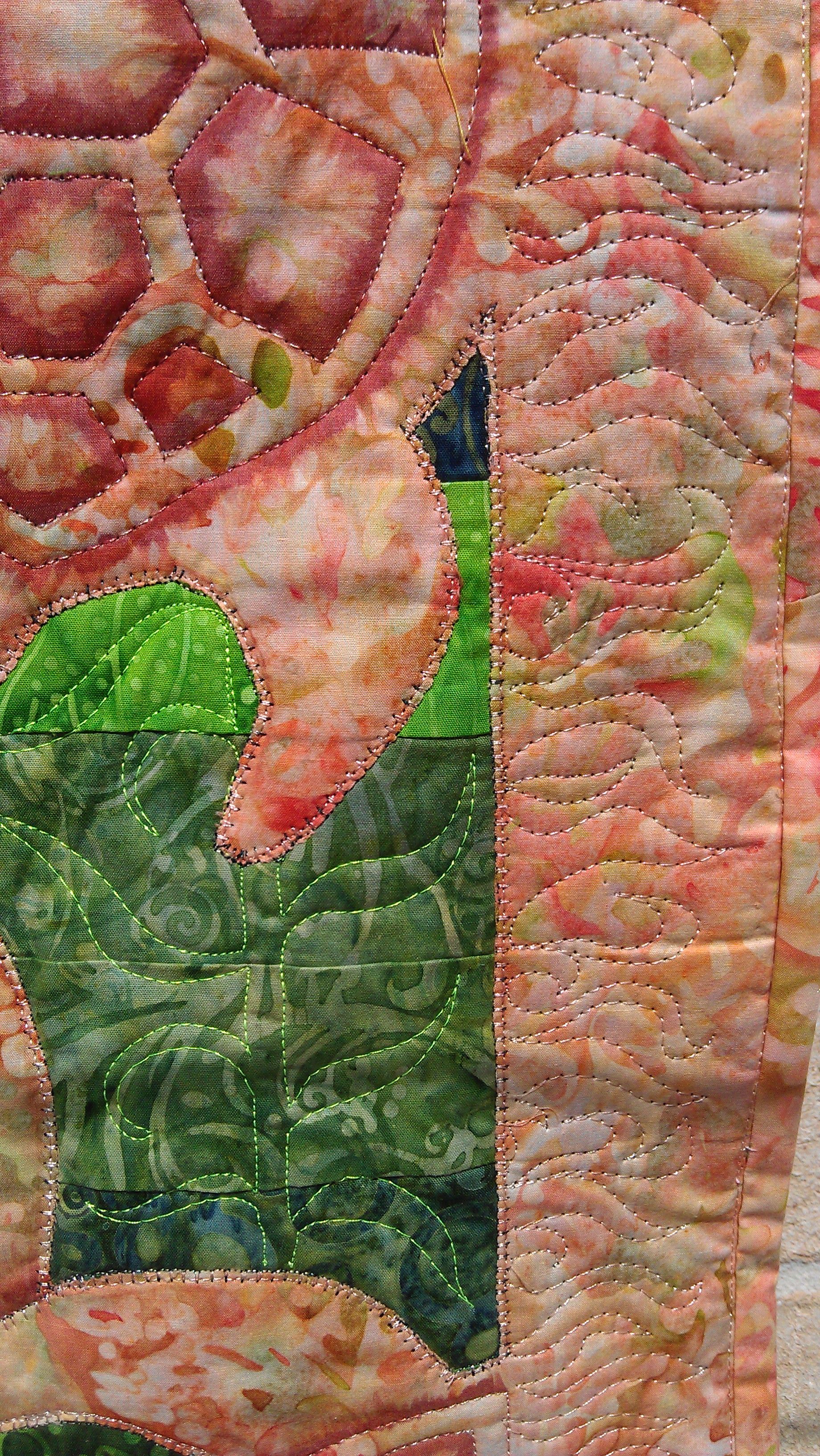 Detail of the shading, kelp, blanket stitch edge over the raw applique edge, and the binding