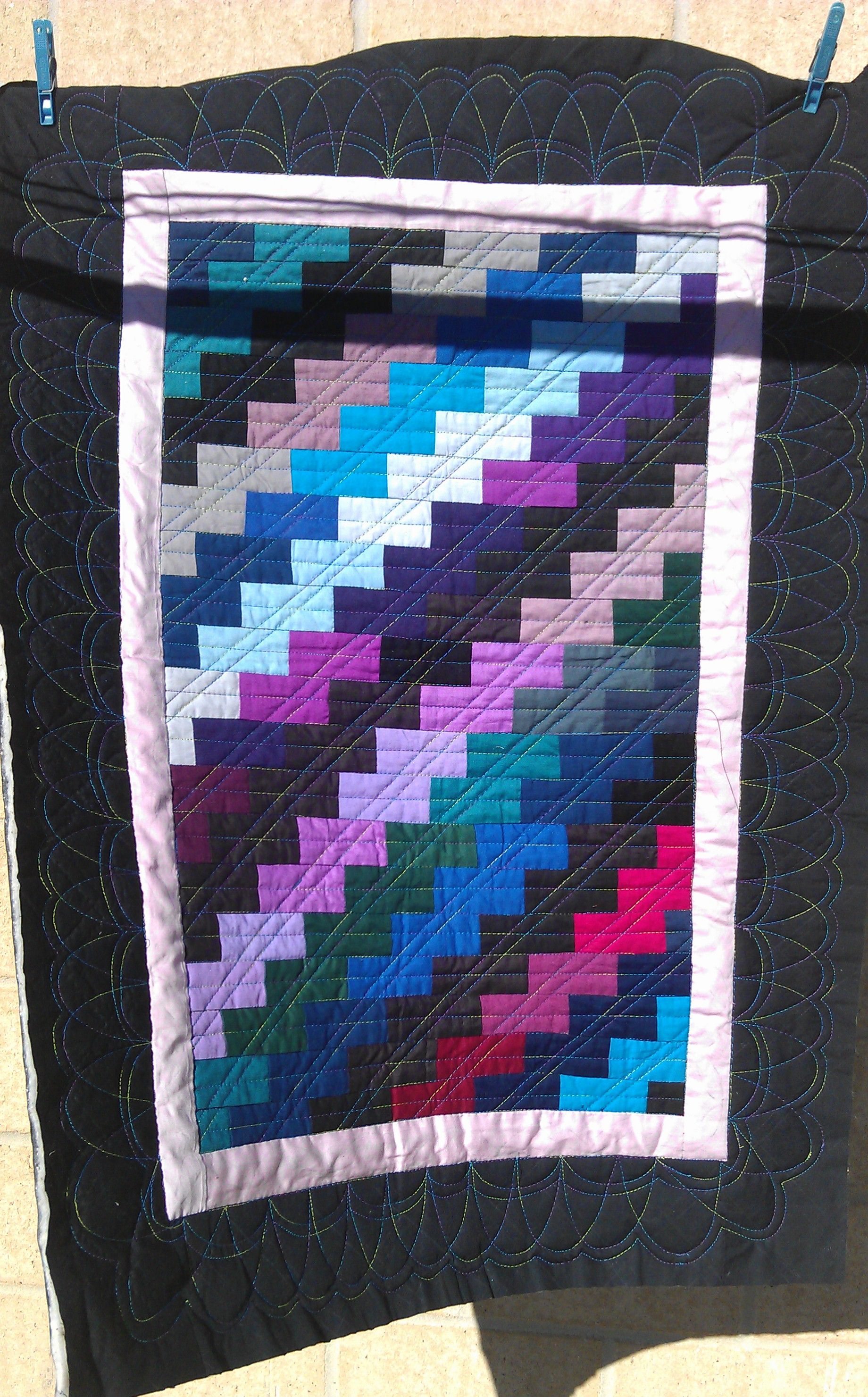 And yes, more time was taken as I had to go slow with the rulers, but also because I stitched the back on itself — twice! and had to unpick it… <grrr> I think this small quilt ended up taking about five hours to quilt, when I thought it would be maybe an hour…