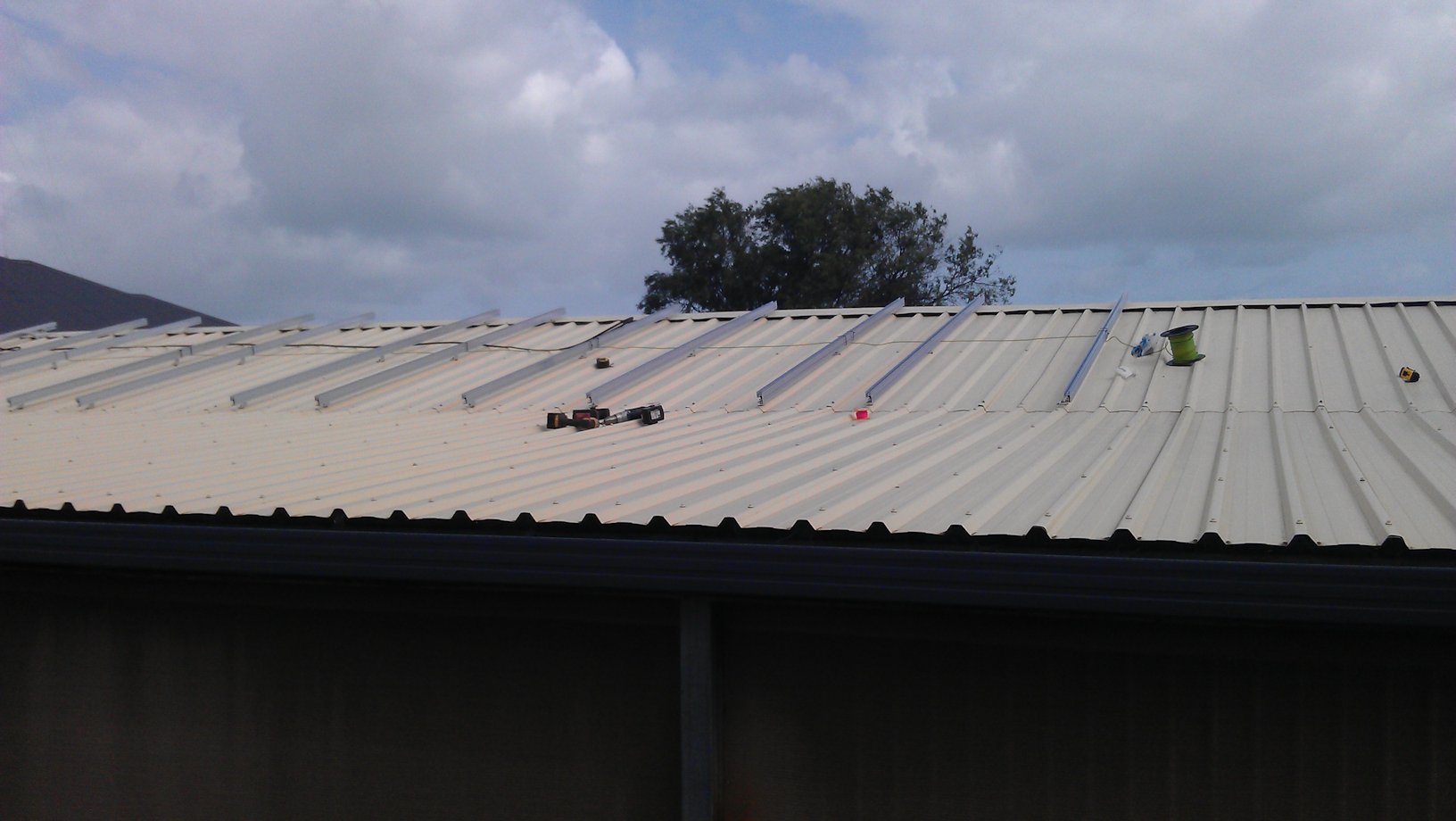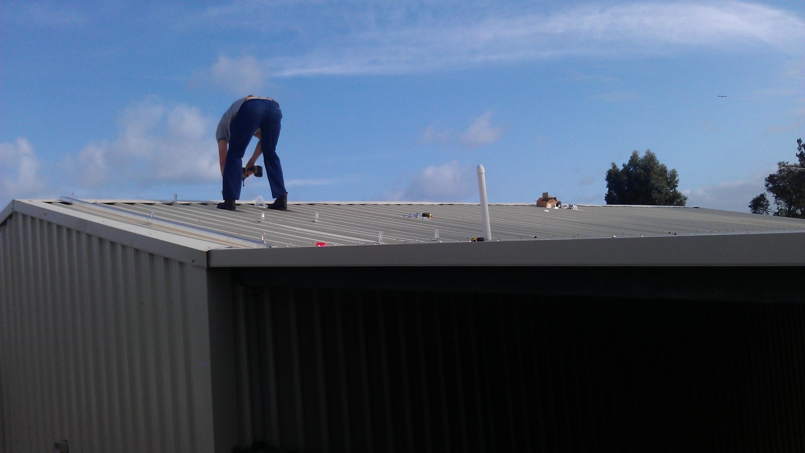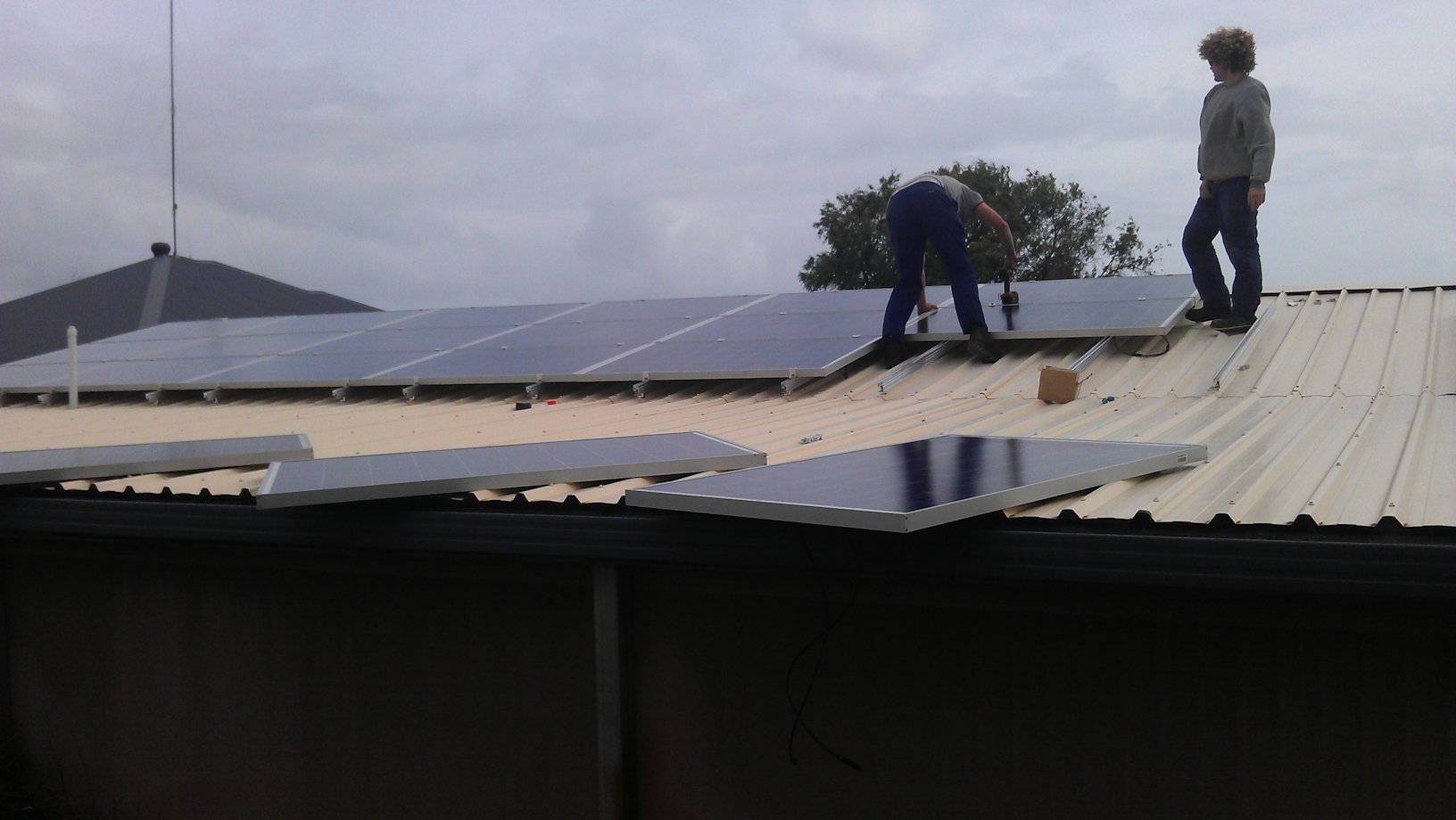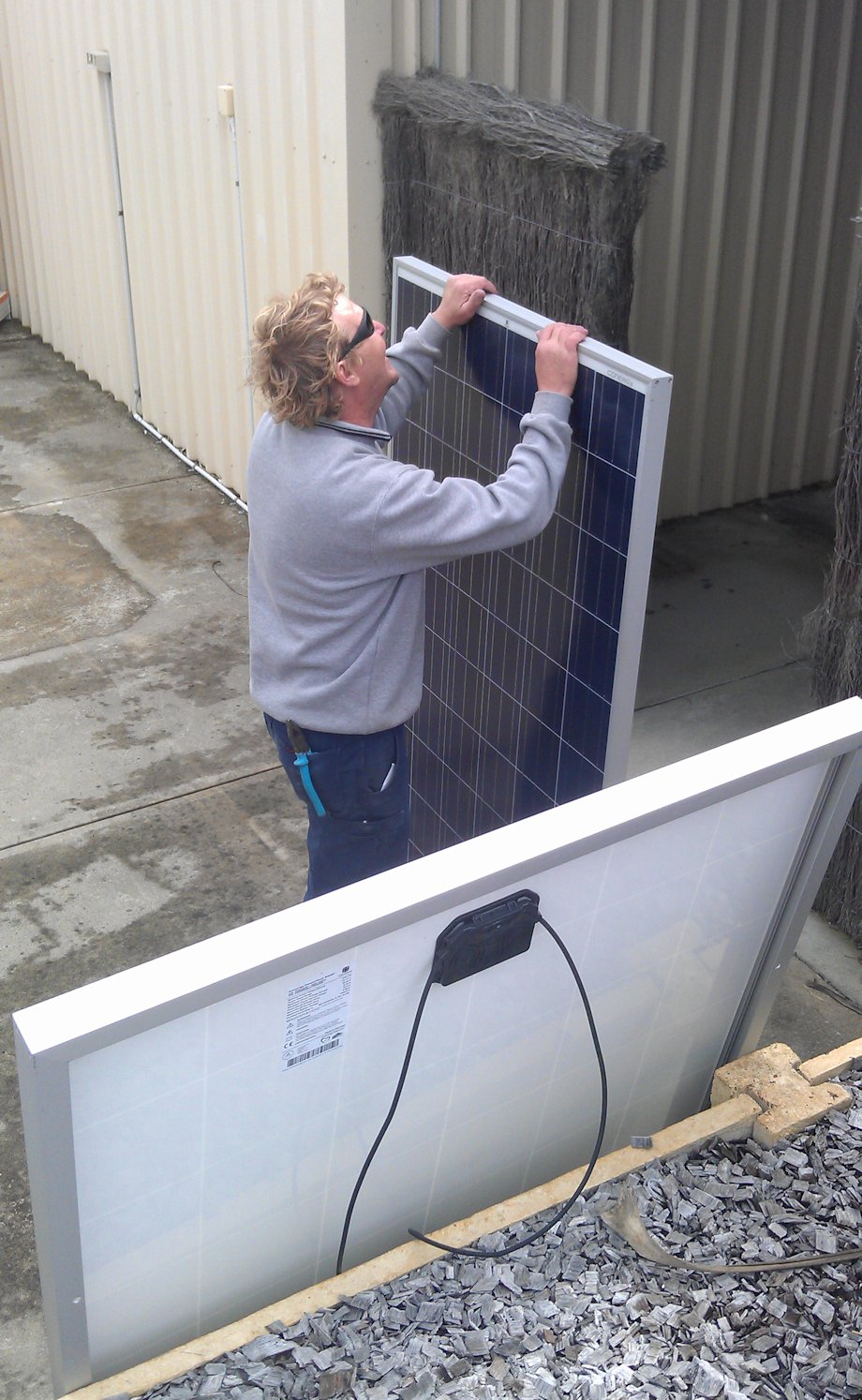 The boss passing up the panels to the young bucks on the roof. He did all the work inside and kept out of the weather 😉