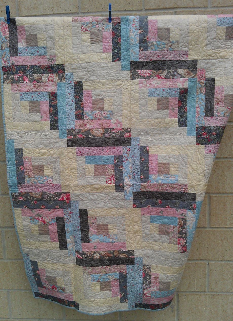 It was a such a pastel log cabin quilt, with lots of small flower fabrics used — how to quilt it? I decided on an all-over continuous line motif of large and small arcs, emulating flowers.
