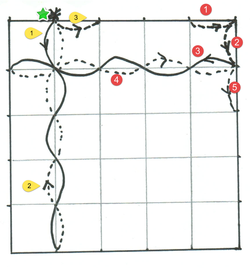 Here’s a diagram in case you learn better this way or want to practice with pen and paper first (explanation below the diagram; the arrows show direction):