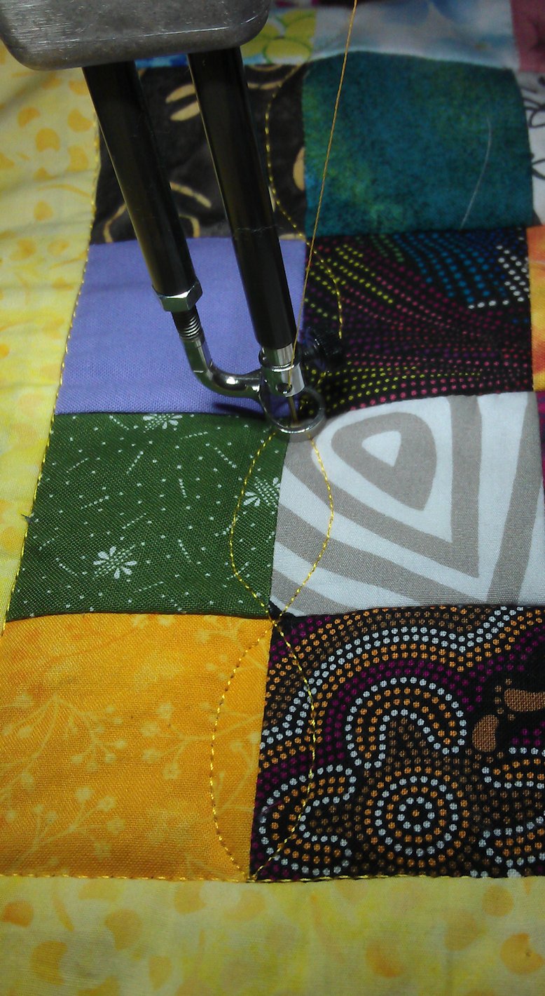 - When you’ve finished all the ‘columns’, arc down to the rows and stitch ‘S’ curves across all the rows. Turn the quilt if you find it easier to stitch up/down than left/right.