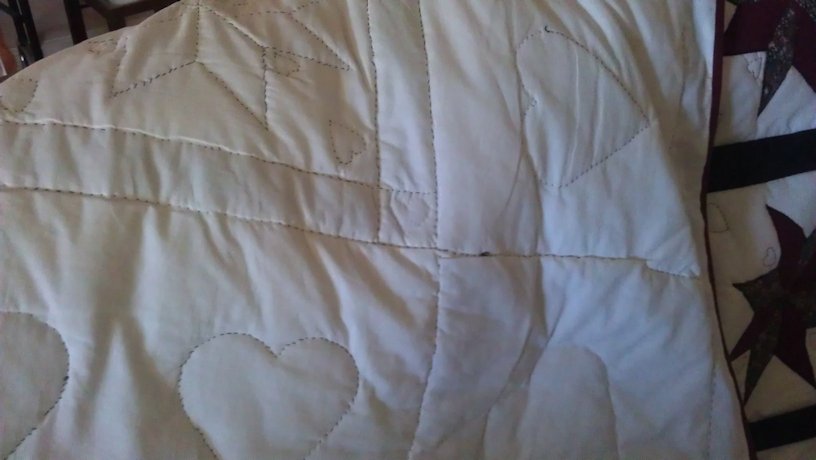 - Marks on the fabric. There were a few marks on the fabric that looked like rust. As this quilt has hardly been used, who knows where they came from or how long they’ve been there. I didn’t try to remove them.