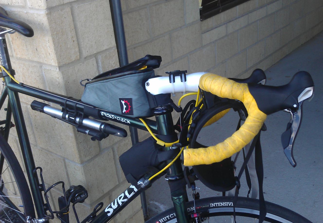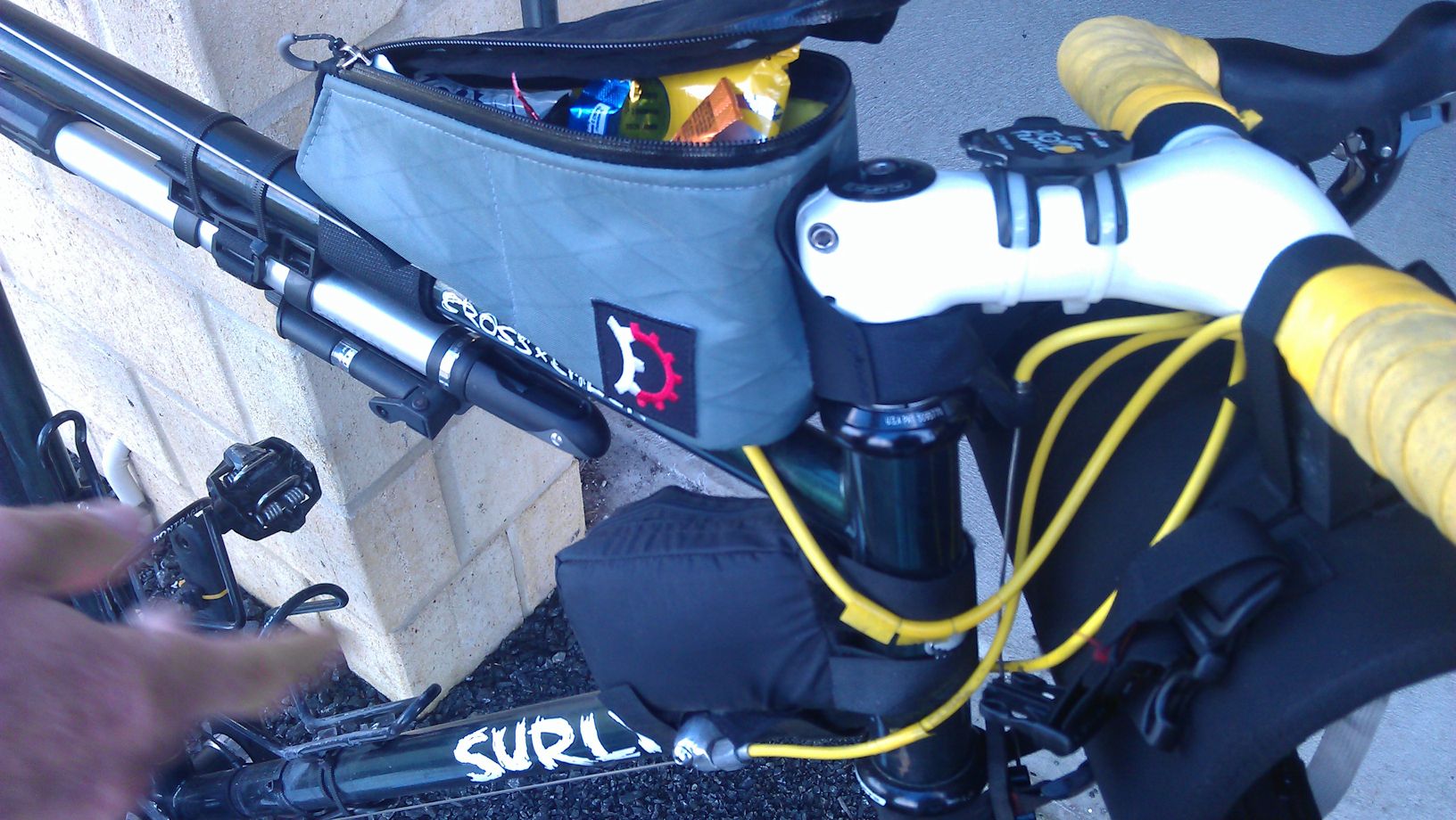 Everything was packed onto the bike, except for the stuff he mailed ahead to himself. His main water supply was his ‘Camelback’ strapped to his body and with a mouth tube. He carried ~4.25 L water – 2 L in the Camelback, and 3x 750 mL bottles, each of which also contained powdered electrolyte. He would only drink from the bottles when he stopped, and would sip from the Camelback about 4x per hour. He never ran out of water. He also started cycling very early in the day, and as it was cool in the mornings, he wasn’t drinking too much water.