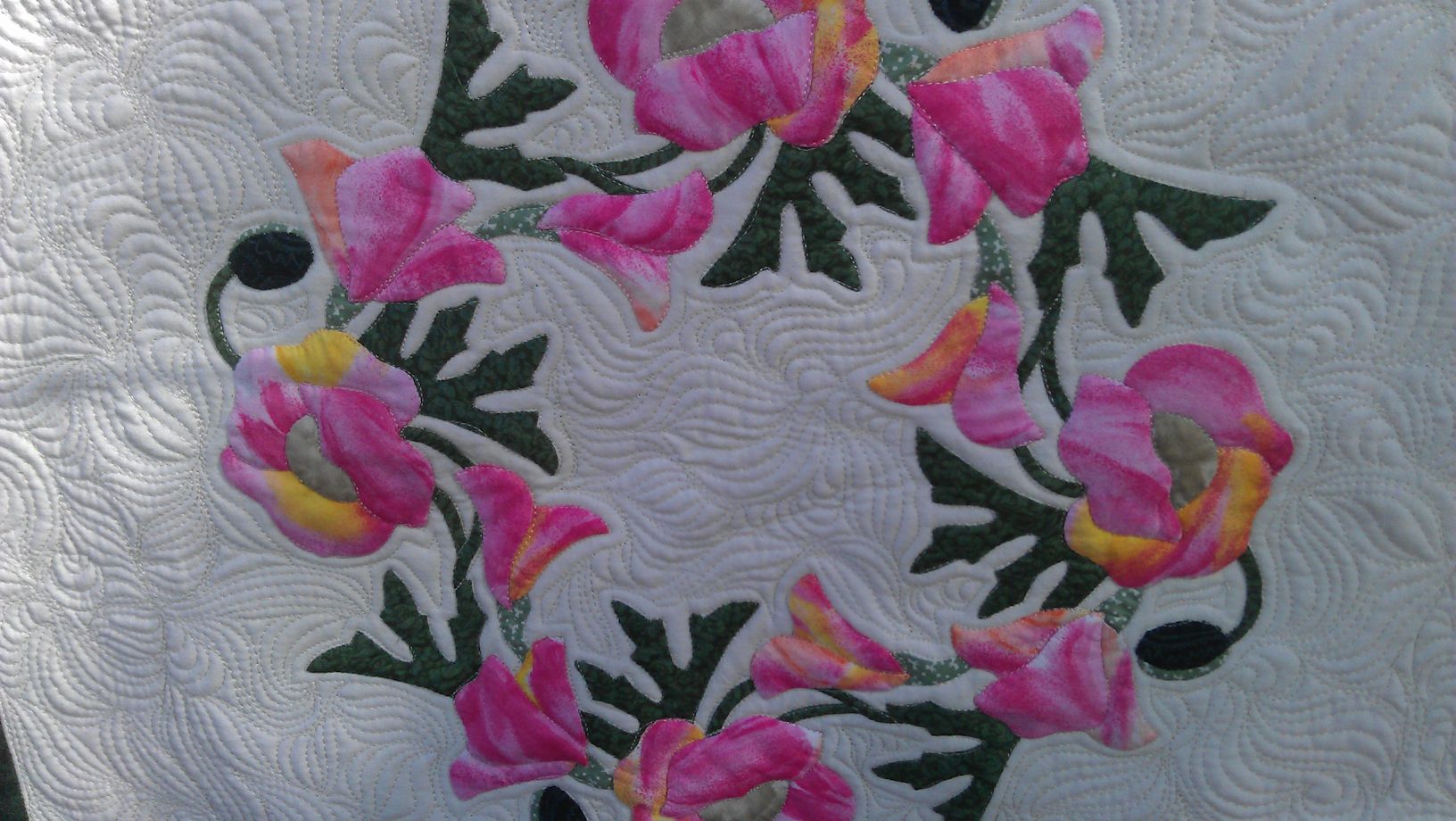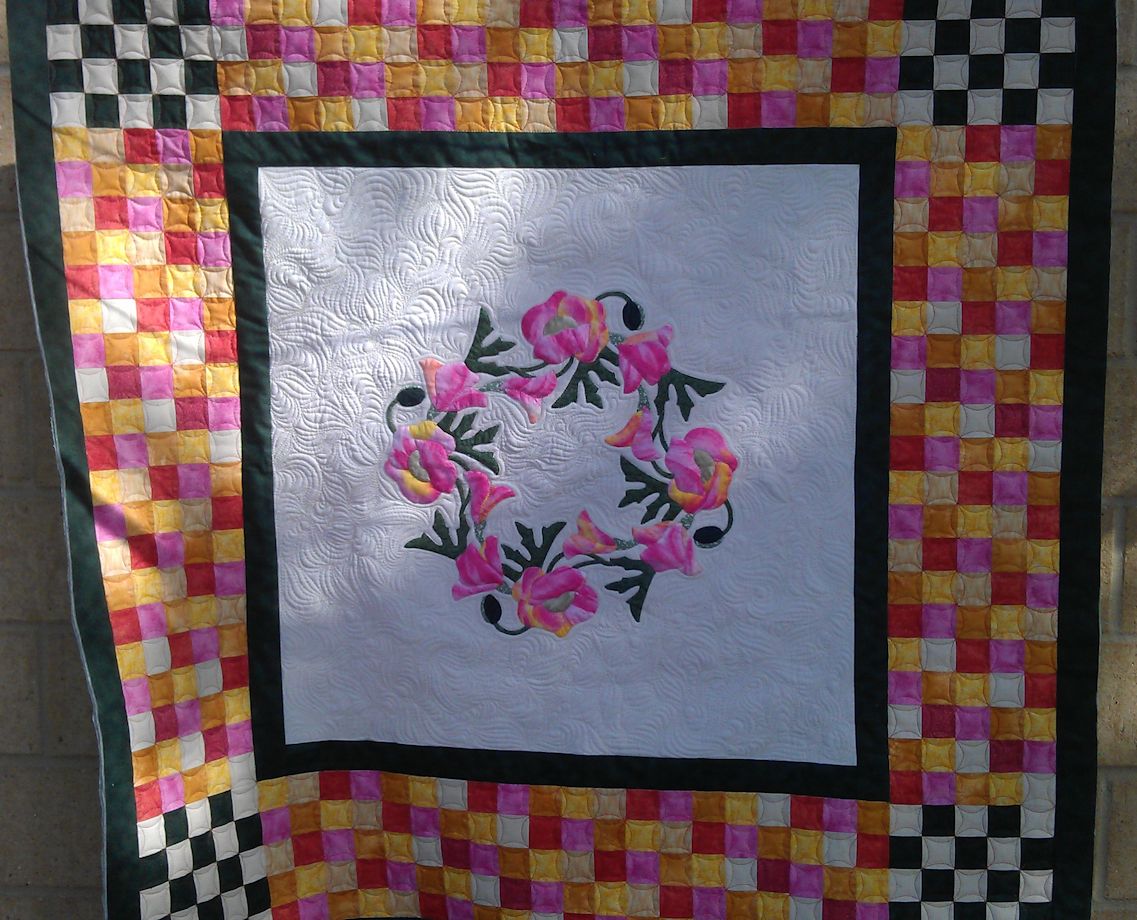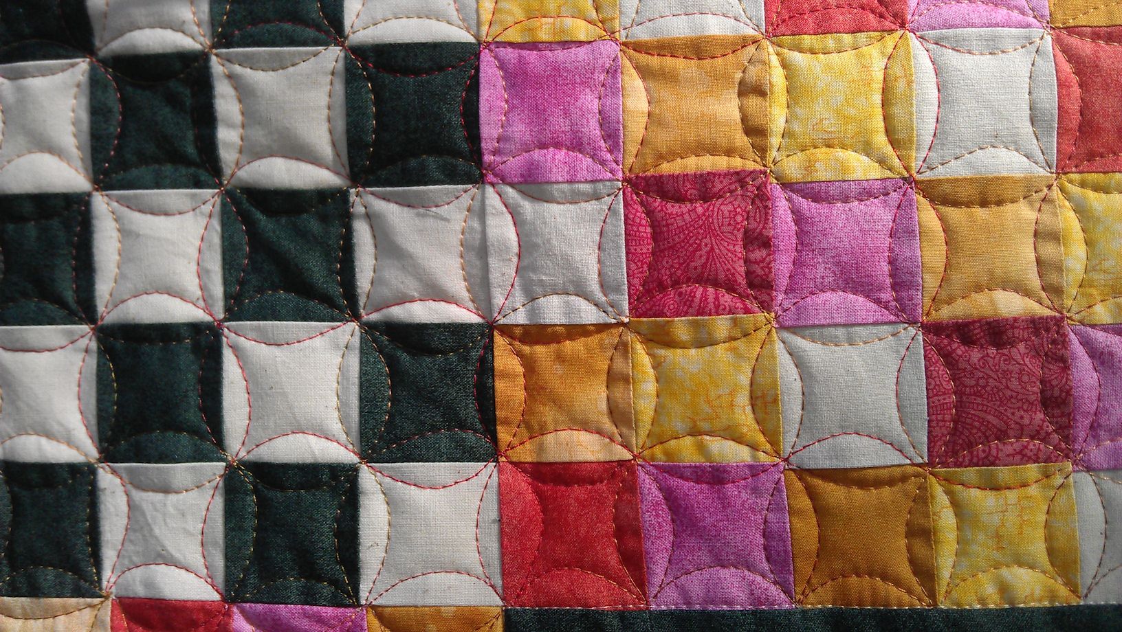 This small dark quilt was a challenge. How to quilt it to enhance the depth of the colours, while not overpowering the quilt with the quilting?