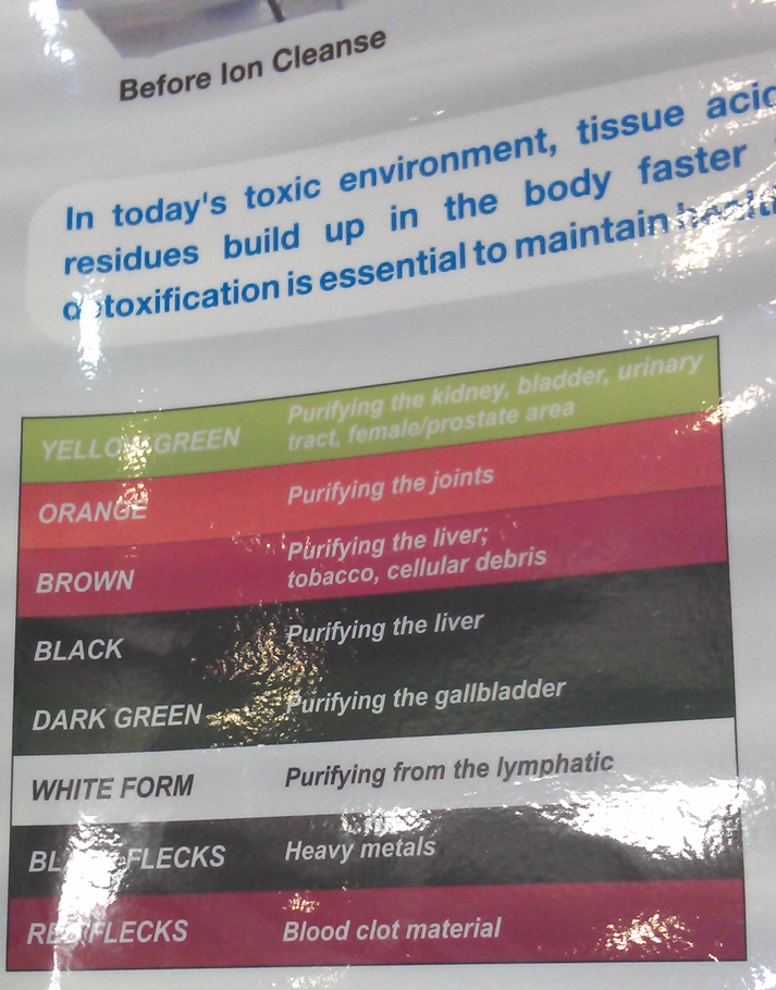 - https://www.ncbi.nlm.nih.gov/pmc/articles/PMC3228292/: Objective Assessment of an Ionic Footbath (IonCleanse): Testing Its Ability to Remove Potentially Toxic Elements from the Body. J Environ Public Health. 2012; 2012: 258968. Published online 2011 Nov 29. doi: 10.1155/2012/258968