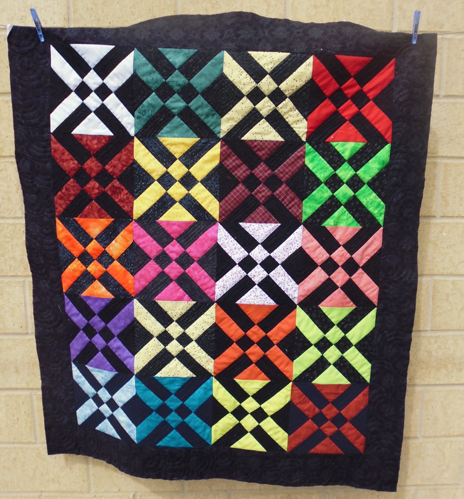 This was an odd quilt. Odd shapes, odd colour combinations. (As always, my opinion only! I don’t make them — I just quilt them.)