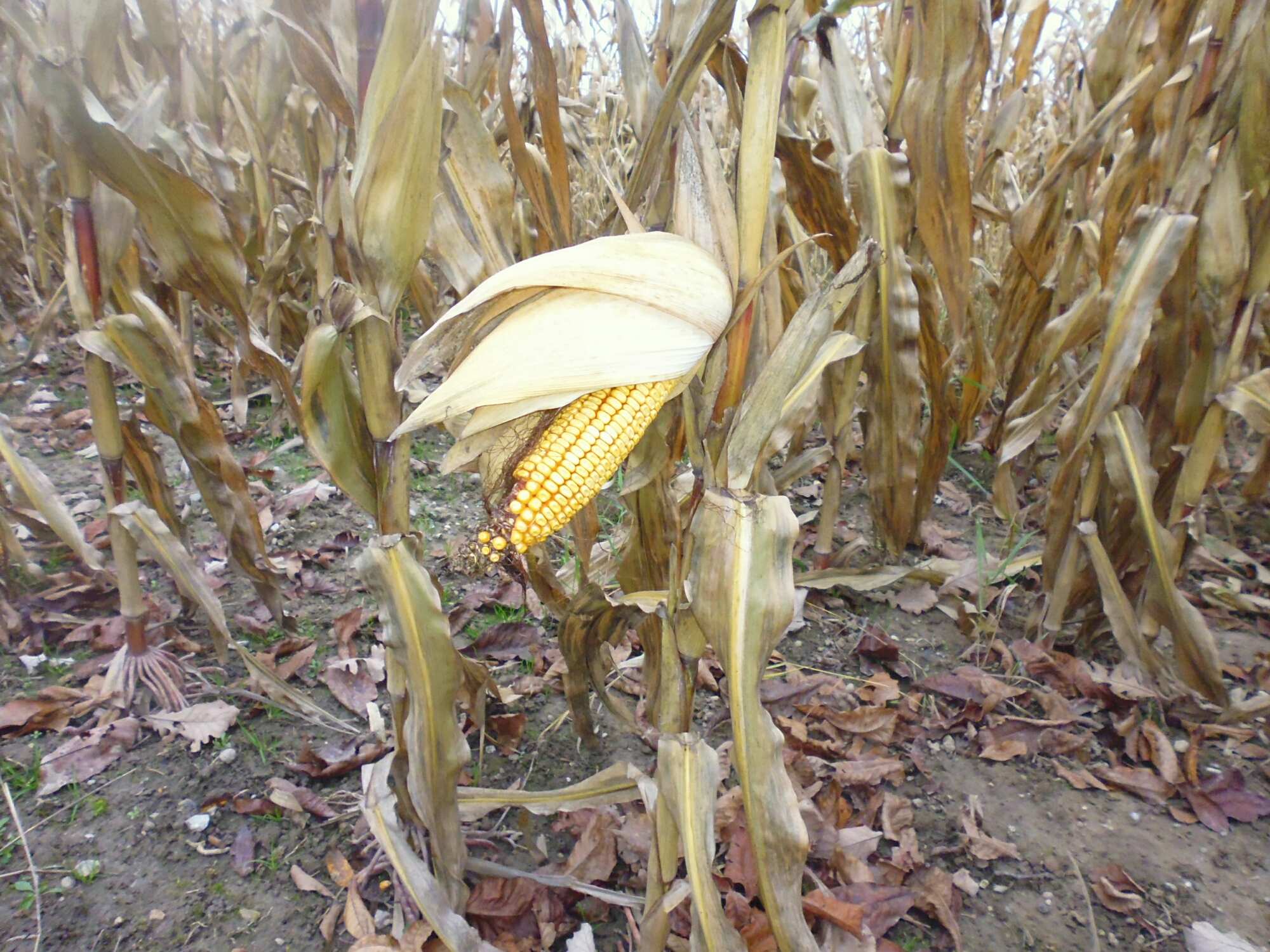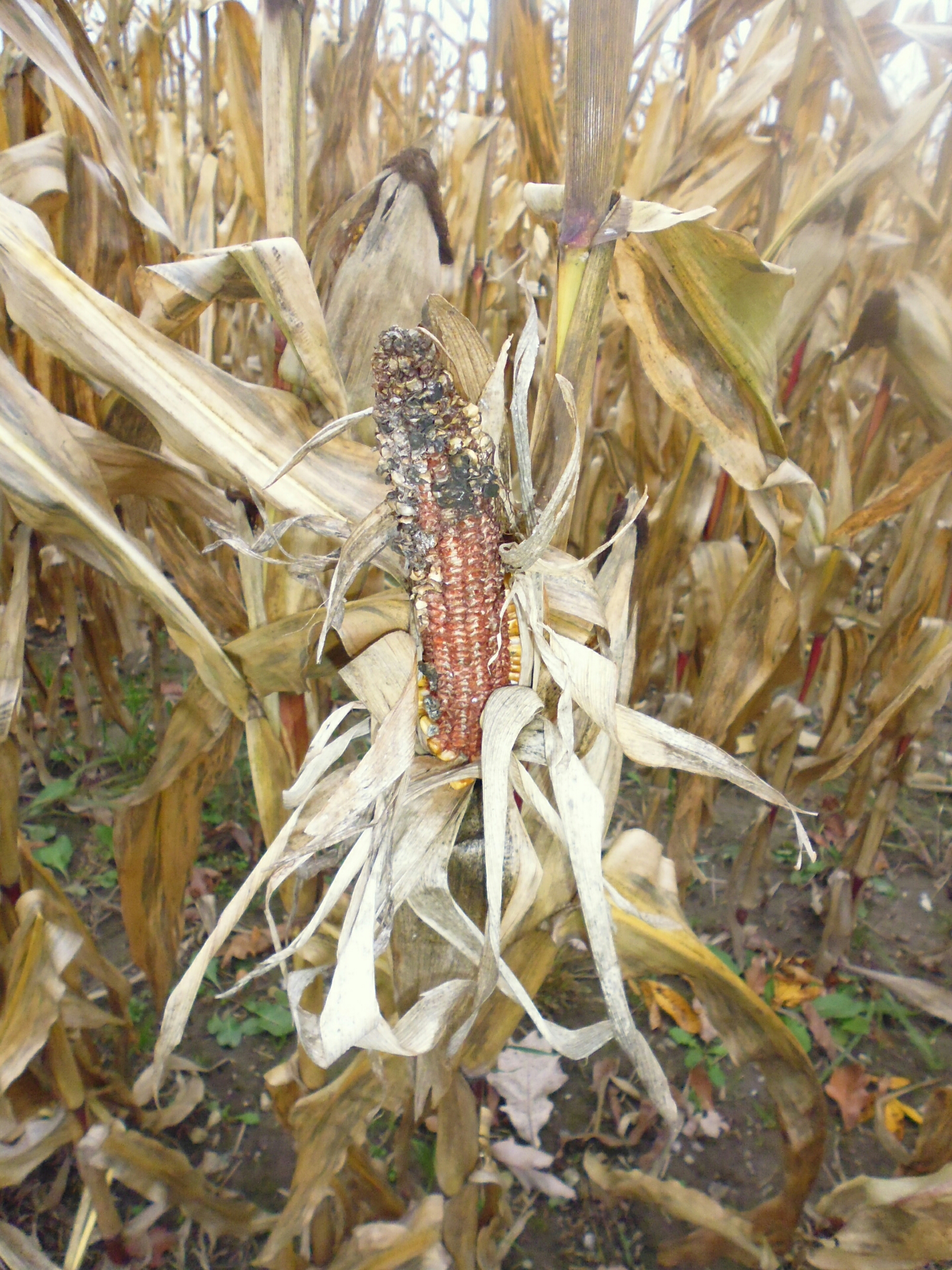 And as I walked to the road, I took some photos of the corn that’s ready to harvest. Some ears are still intact, but many on the stalks close to the road have been nibbled on by the deer.