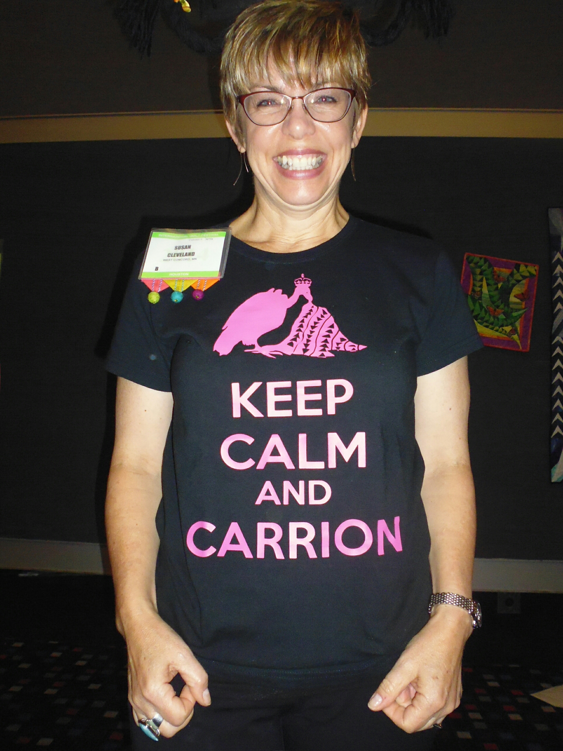 Today started with Friday Sampler, a two hour taster of 30 quiltmakers’ techniques. Not all interested me, but about six or so did and there was plenty of time to go to those stations plus a couple of others. Each presenter talked about an aspect of their process for about 10 minutes, then people moved on to the next presenter. As with the Mixed Media Miscellany yesterday, it all worked well.