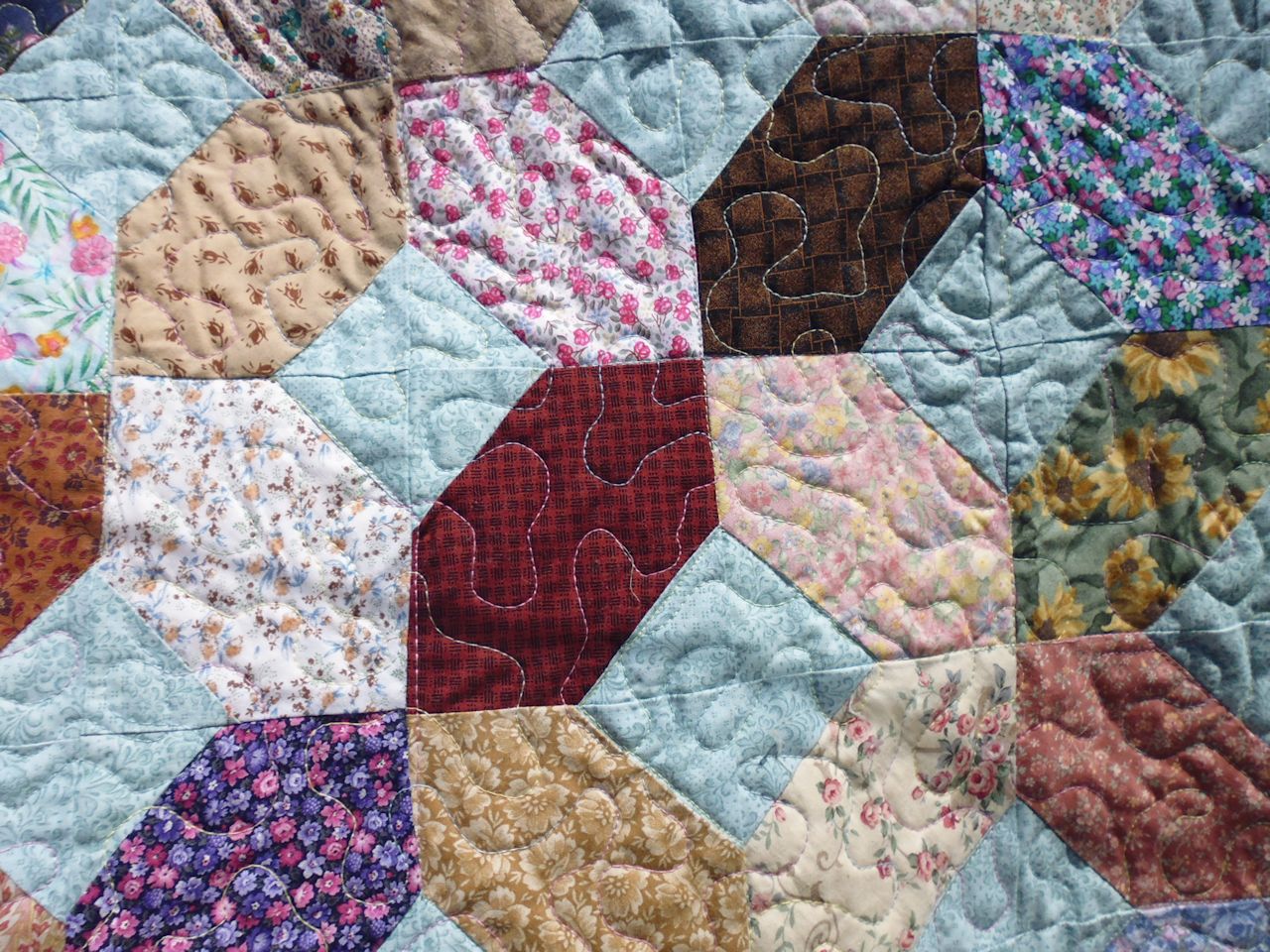 Some quilts (like #182) sing to you; others make you want to get them off your machine table ASAP… #183 was one of those. I didn’t like the fabrics (I suspect some were quite old), the colours, or the HUGE amount of biased edges and wonky blocks. It was one of those quilts that has to be stitched into submission.