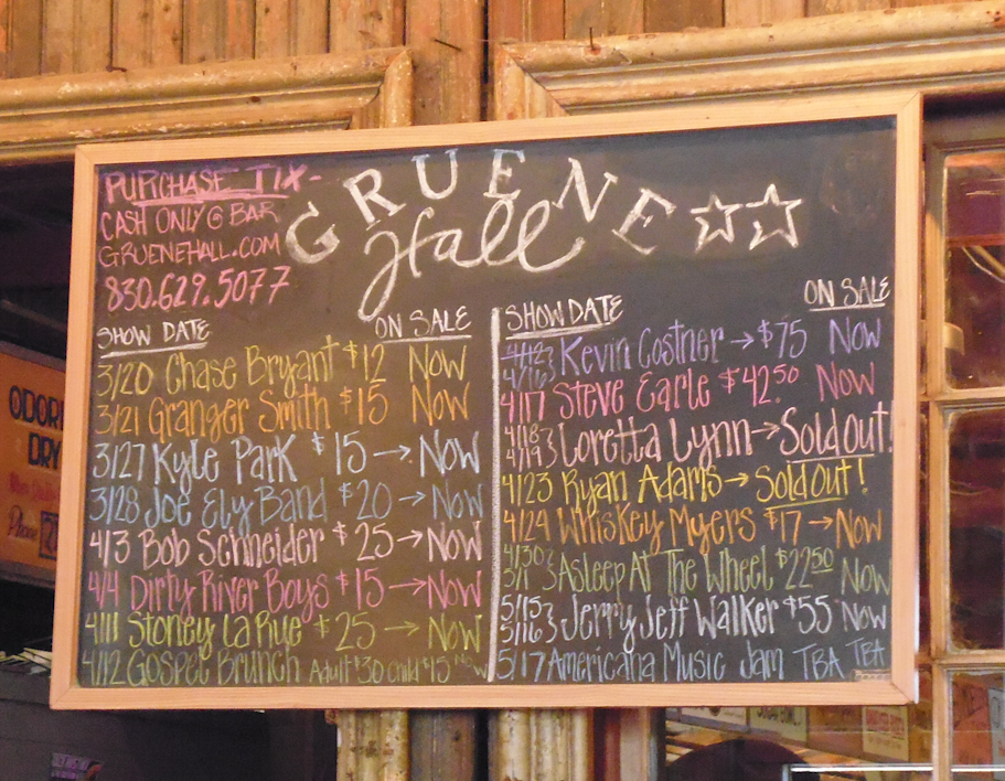 I stayed overnight in New Braunfels (Gruene, actually [pronounced ‘Green’]) with Kim and her Mom–the QA organisers. Kim showed me some of the Hill Country around New Braunfels, which I had never seen before despite this being my third trip to the town. What a pretty place! I can see why tourists keep coming back. We also walked some of the old area of Gruene, including the Gruene Hall, where many a famous act has played. Check out the line-up for April: