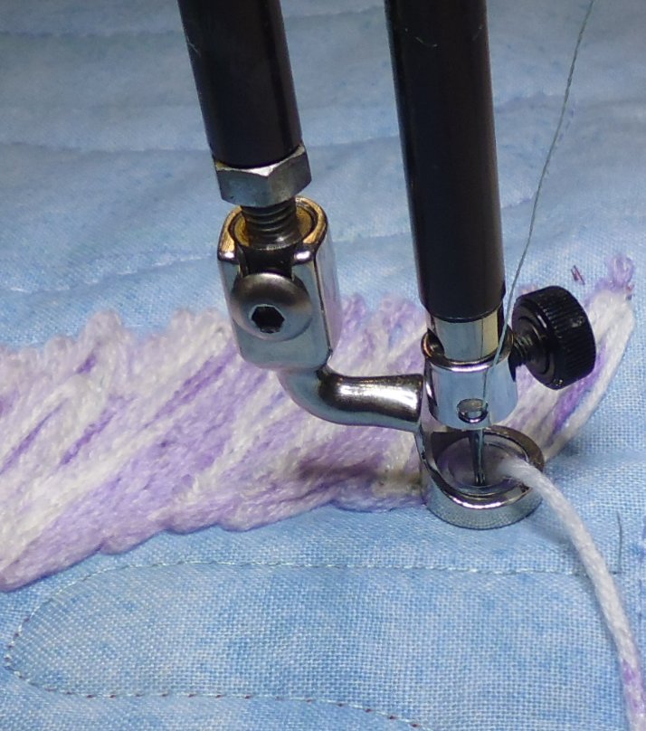 Wowza Wowza. That technique would make beautiful pillows. I didn’t realize that Helen was the original person who got the couching foot to Handiquilter. I have couching feet for threads for my DMS. I wonder if she was the “push” to get the original foot to convert to the ankle feet. I’m sure that was a money maker for HQ.
