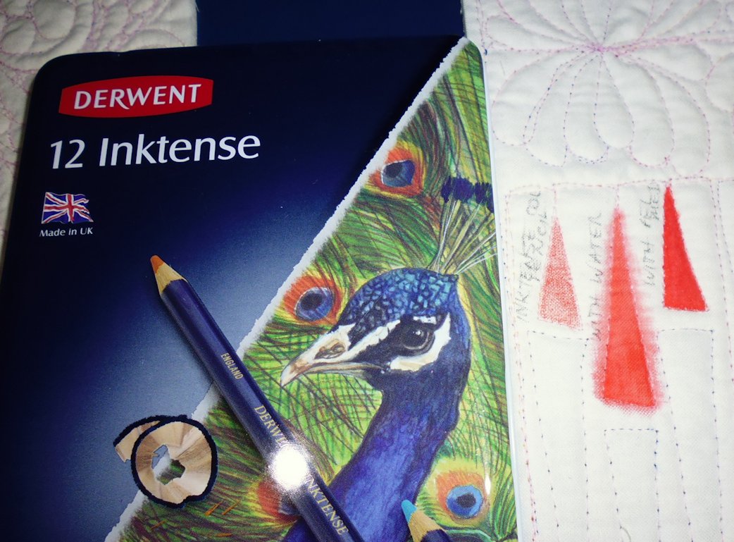 • Inktense Watercolour Pencils — with no water, with water, and with FolkArt textile medium (Inktense Blocks should work the same, but I didn’t test these)