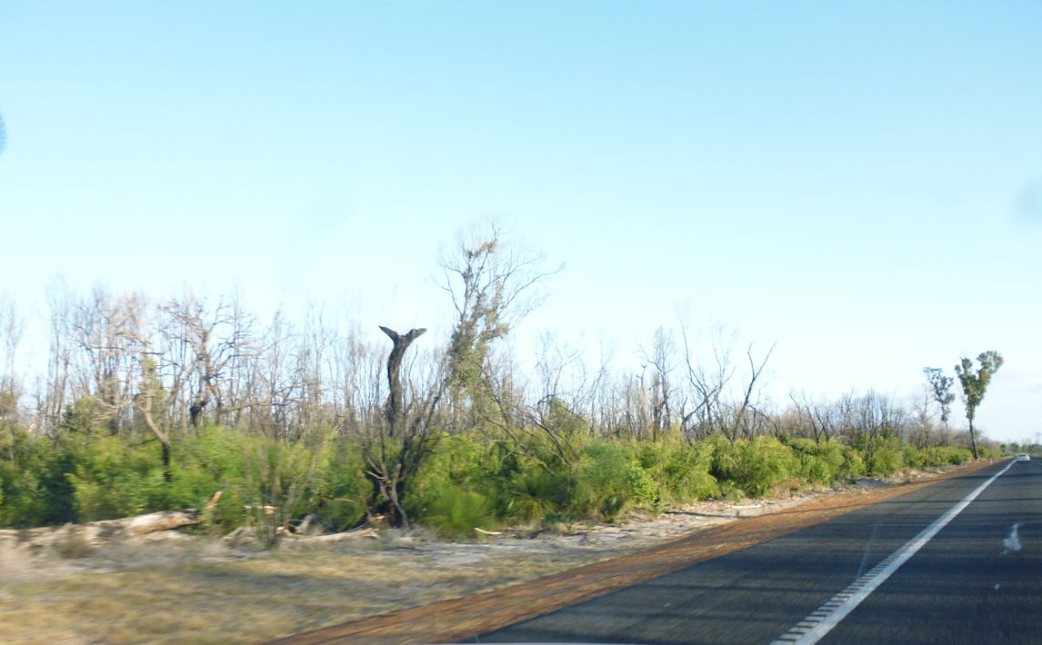 Some photos while driving to and from Perth this past weekend — the first photo is of the bush alongside the highway in an area not burnt (this is what it used to look like before the fires):