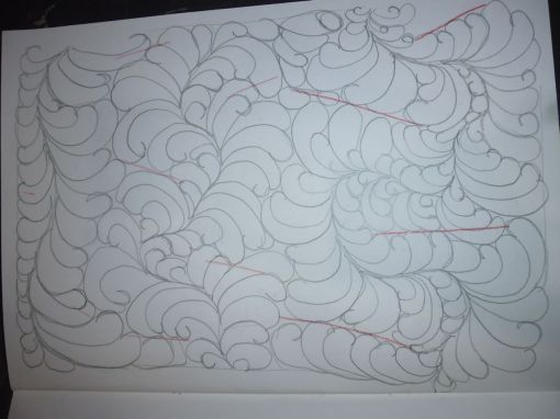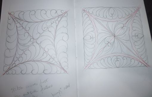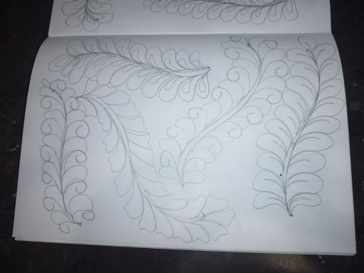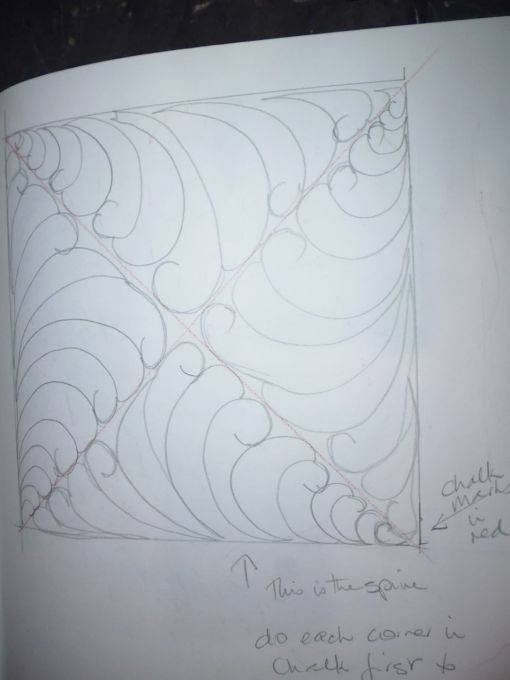 Our tools were paper and pencil and for two days we learnt, sketched, drew, and amazed ourselves with our progress in coming up with designs for free motion quilting. Inspirational, and definitely worth doing if you ever have the opportunity. It’s not often you can just sit and doodle for two full days! I’ve already used one of the designs in a couple of quilts.