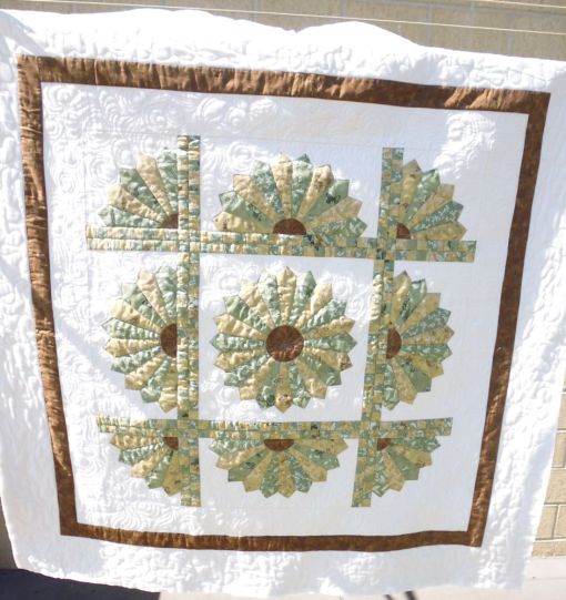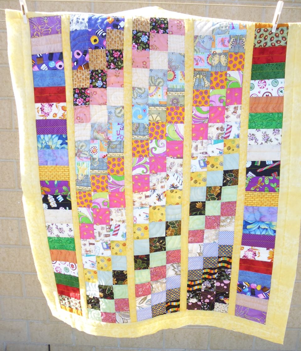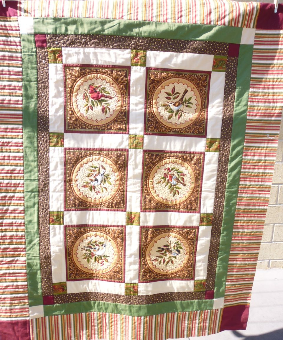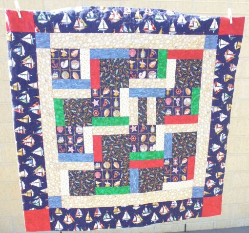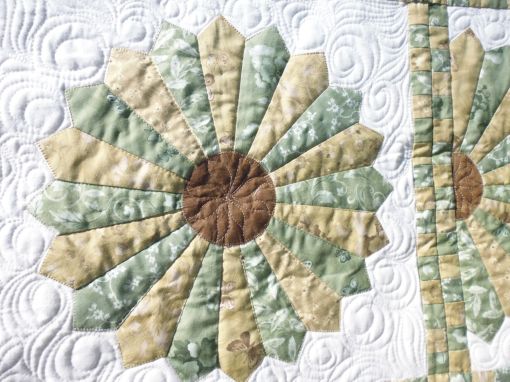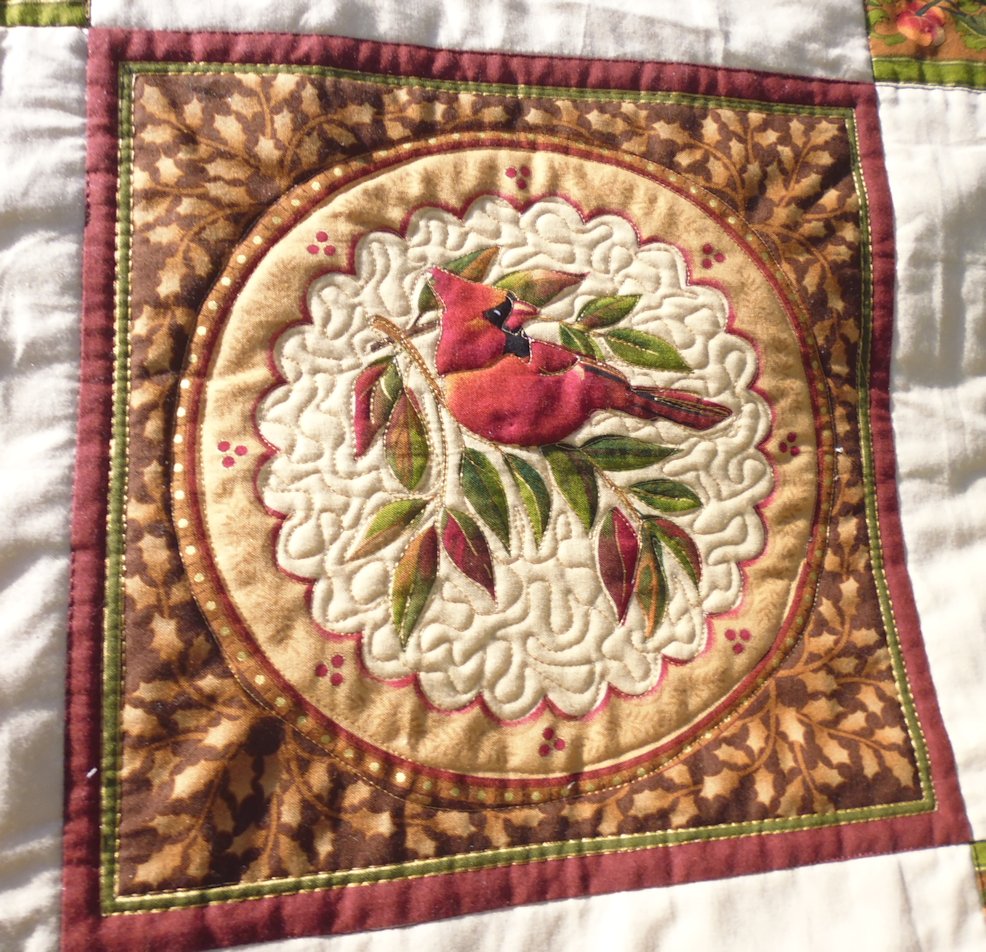 How to quilt this quilt? As usual, I started by stitching the ditch around all the main blocks and elements. For the border, I did a large meandering stipple, with stars in the corner squares. In the main top, the busy fabrics leant themselves to a simple motif — I chose my ‘go to’Β open headband motif, using red thread.