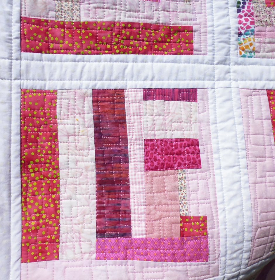I have previously donated three other pink quilts to the McGrath Foundation — two small rail fence quilts, and a big one made from a jelly roll of pink batiks.