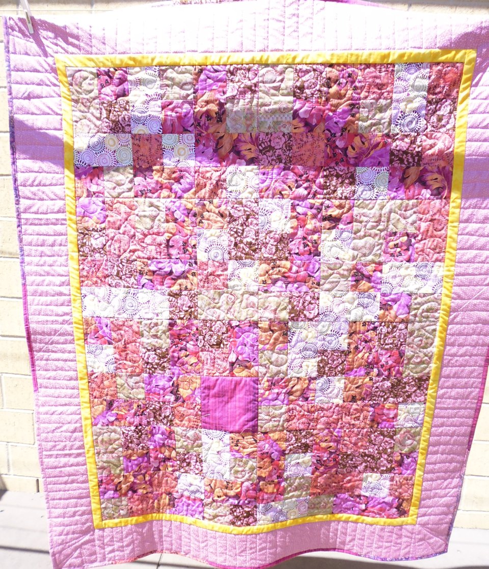 I’m donating these two pink quilts I made to the McGrath Foundation (for breast cancer). The first one is made from pink scraps I joined together to ‘make’ new fabric.
