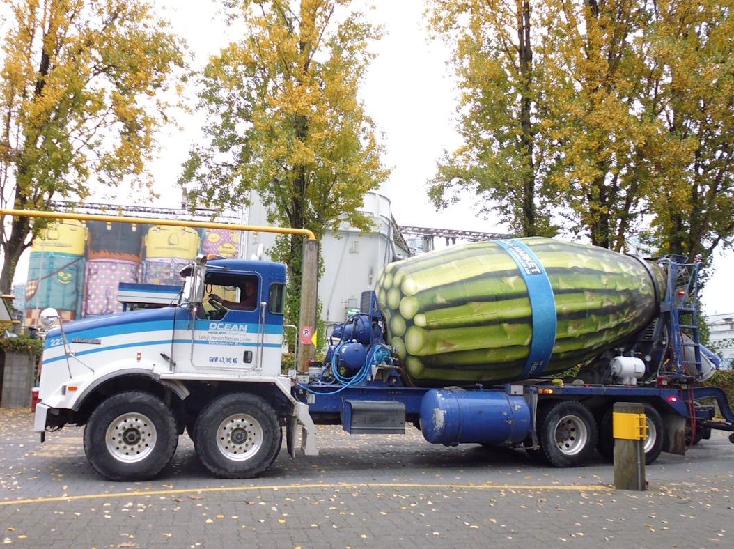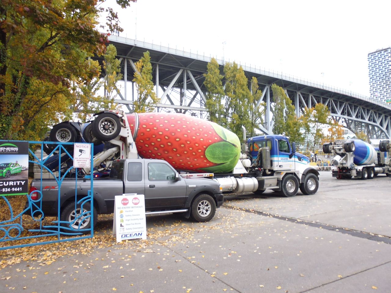 One other thing that was cool were the painted silos next to the markets, which are part of a working concrete plant. And even cooler? The concrete trucks with their bulbous containers painted as a strawberry or a bunch of asparagus.