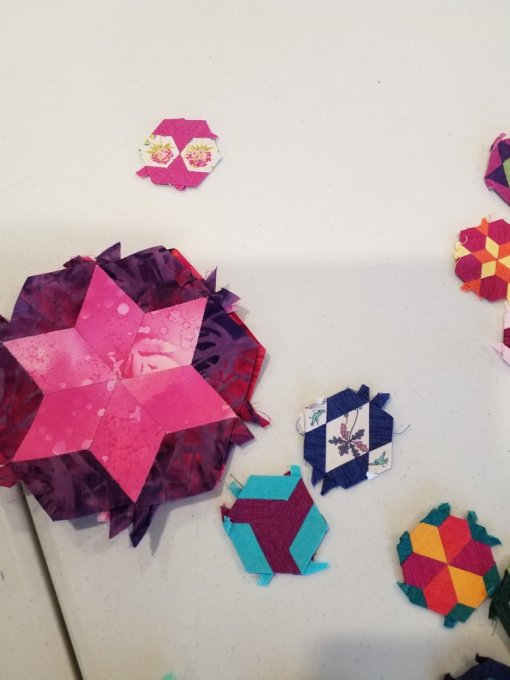 And Carol has decided that usual sized hexies just aren’t enough (I can’t even do those!), so she does miniature ones! I think she’s mad!!