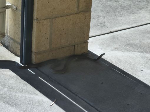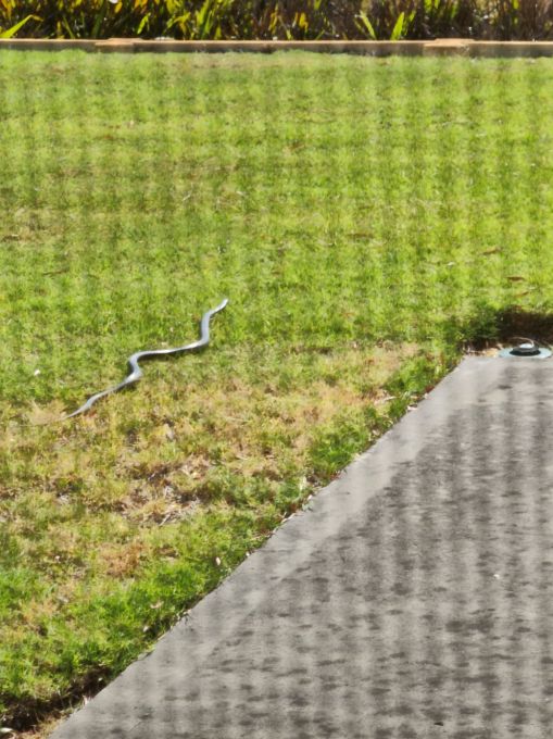 Then just two days ago, something caught my eye outside the office window at the front of the house — it was a snake, likely a young adult dugite. It slithered across the concrete pad, took in some shade behind the portico pillar near the front door, then slithered over the lawn and over the retaining wall beyond, then disappeared. The previous owners of the house (who built it) said they’d seen three snakes in the garden/around the house in the three years they were here, but in our 10 years, I’ve never seen one. Until now.