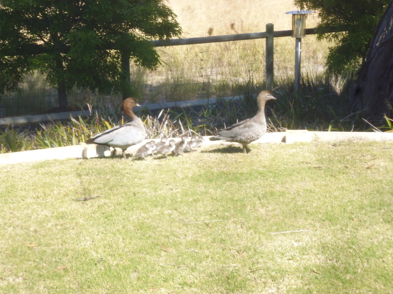 So imagine my surprise when a family of wood ducks wandered across our front lawn a couple of weeks ago! We’re up a hill at least 200 m from a natural water course, and we’ve never seen adults here, let alone adults with seven babies!