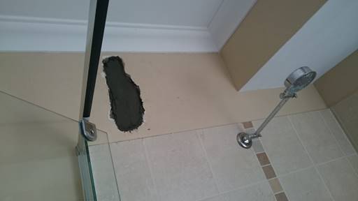 - patch, paint etc. the partially repaired hole in the wall above the shower where the plumber had to replace the pipe