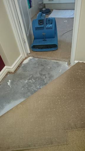 - I called Eric (the handyman) to get him to check the damage and see what needed to be done, in preparation for a quote. He found no evidence of any bubbling or bulging in skirting boards or behind paint, but he said that wasn’t uncommon at this stage and could take weeks/months to become evident. He left us an industrial floor fan (not heated) to help circulate air to remove moisture. He’ll quote me on the work needing to be done, based on this initial inspection.